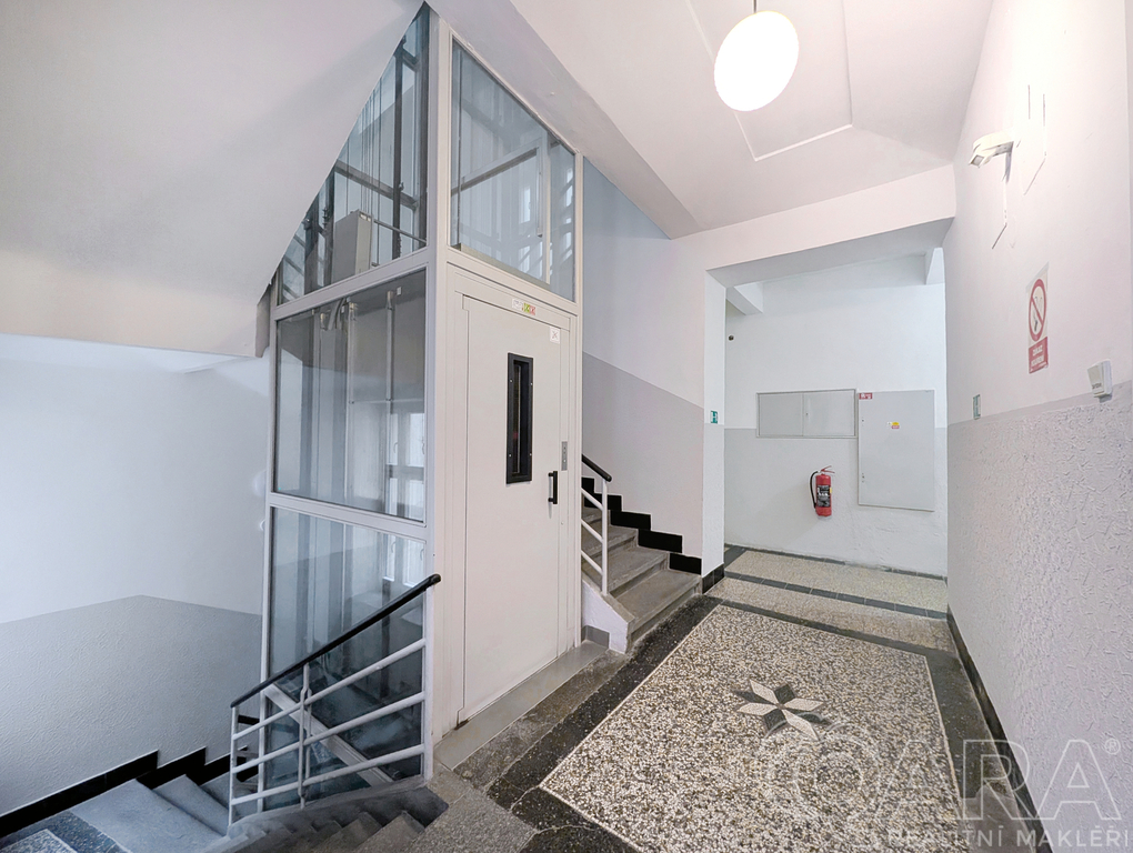 První pokoj je přístupný přes kuchyni (průchozí). Druhý pokoj má samostatný vstup z předsíně. Z předsíně je rovněž vstup do koupelny, která je vybavena vanou, umyvadlem, WC a topným žebříkem. Pračka je umístěna v předsíni. V domě je výtah a byt se nachází na druhém podlaží.