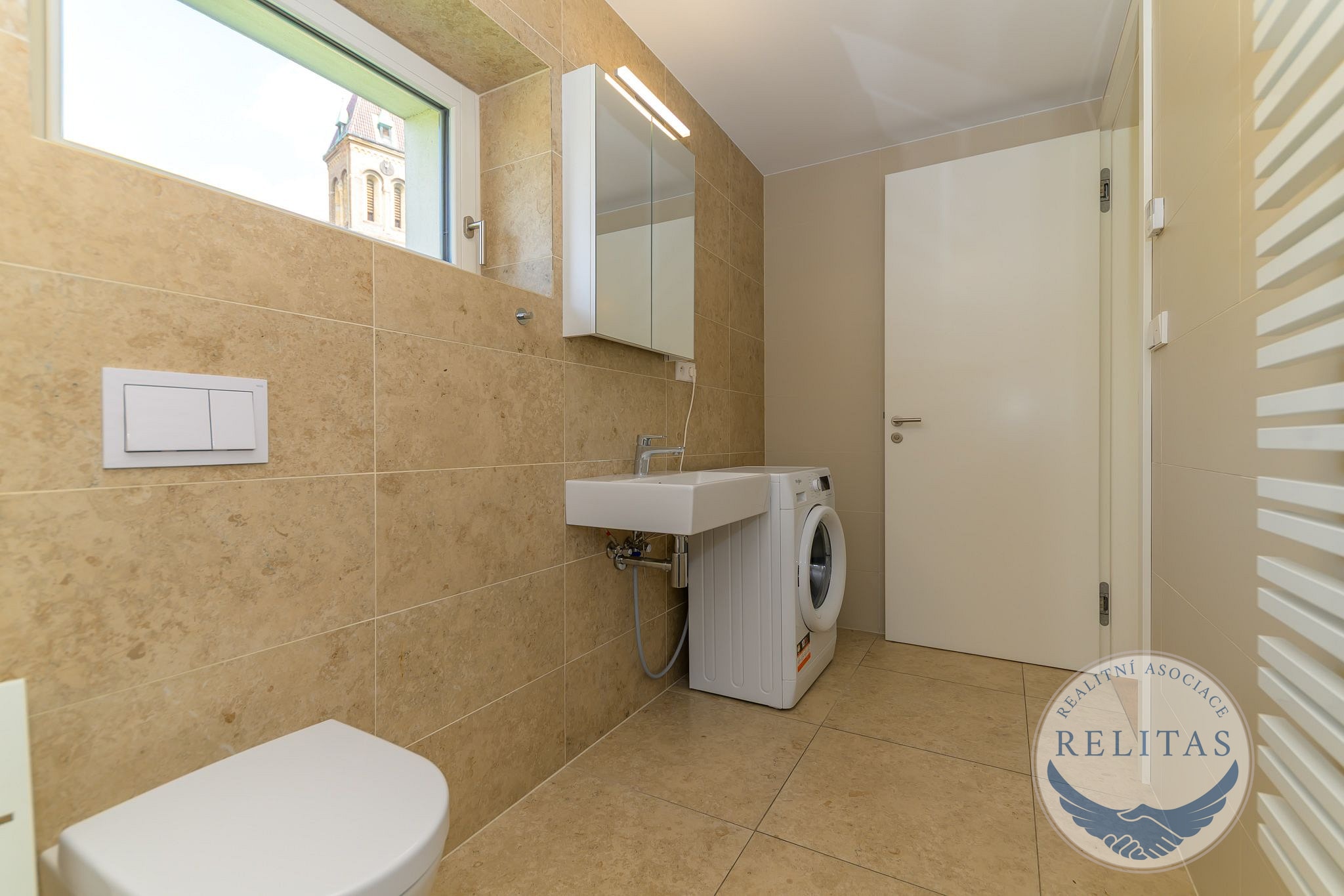 Náročnějšímu nájemci zprostředkuji byt 2+kk, 74, 8, m² + dva balkony v 3. podlaží v projektu Vitality Rezidence – nadstandardně řešené novostavbě z roku 2020, umístěné na Praze 5 – Smíchov, v Kobrově ulici, mezi parkem Sacré Coeur a klášterem svatého Gabriela. Byt se sestává z předsíně s šatní skříní, obývacího pokoje s kuchyňským koutem (42 m²), ložnice s dvoulůžkem (14 m²) a koupelny s vanou, toaletou a pračkou (vizte, prosím, půdorys). Z obývacího pokoje ústí jeden balkon s krásným výhledem na klášter (severozápad), druhý balkon z ložnice (jihozápad), obývací pokoj je orientován na severovýchod. V celém bytě je parketová podlaha. Rezidenti domu mohou zdarma využívat fitness, společenskou místnost s kuchyní či přednáškový sál. Budova má výborný průkaz energetické náročnosti "B - velmi úsporná".