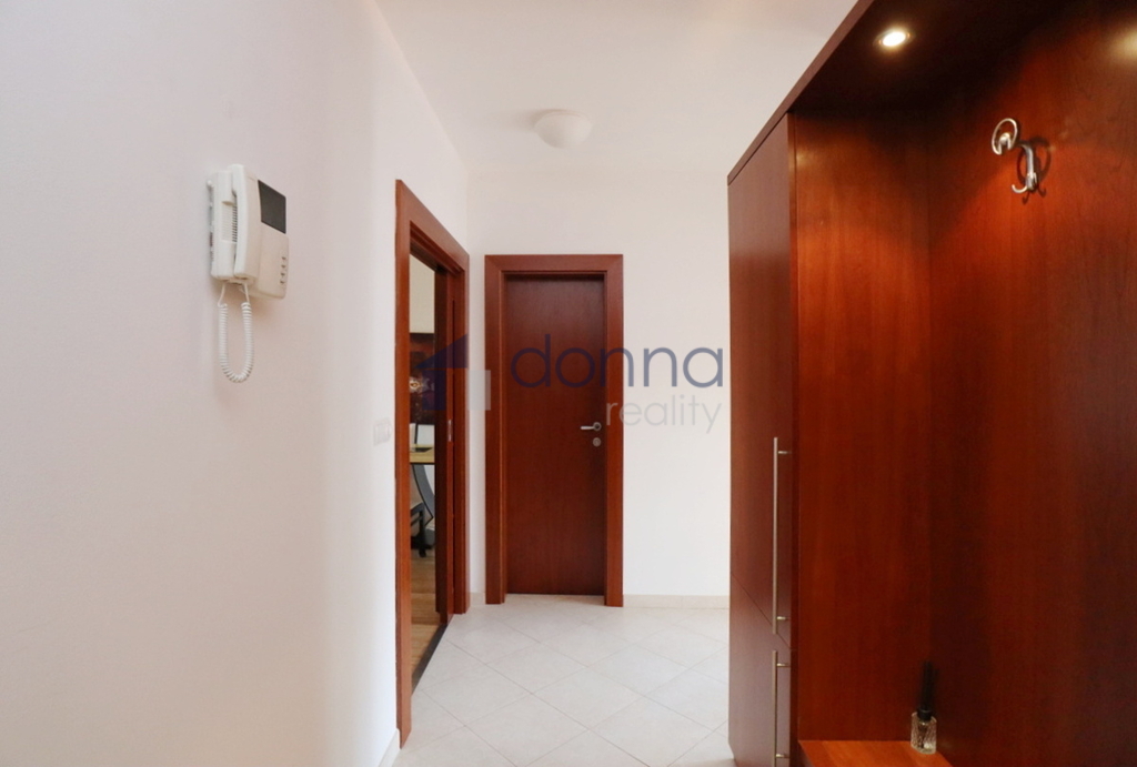 Nabízíme k pronájmu byt 2+kk, 82m2, se dvěma terasami (17m2 a 10m2) , v posledním patře rezidenčního domu s recepcí 24/7 a společnou zahradou pro obyvatele domu, v ulici U Nikolajky, Praha 5 - Smíchov. Byt je kompletně zařízený a sestává ze vstupní chodby, šatny, velké ložnice se vstupem na jednu terasu, koupelny s rohovou vanou a sprchou a pračkou, prostorného obývacího pokoje s kuchyňským koutem a komorou s trezorem. WC je zvlášť. Z obývacího pokoje se vchází na druhou terasu. Obě terasy mají otevíratelnou střechu. V kuchyni lednice s mrazákem. myčka, mikrovlnná trouba, elektrická varná deska a digestoř. Topení a ohřev vody je centrální. Na podlahách dřevěné parkety a dlažba. Na oknech jsou venkovní žaluzie. K bytu je možnost si pronajmout i garážové stání. Dům se nachází v klidné části Smíchova.