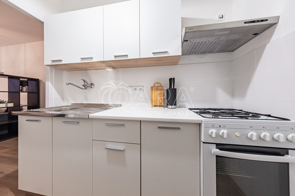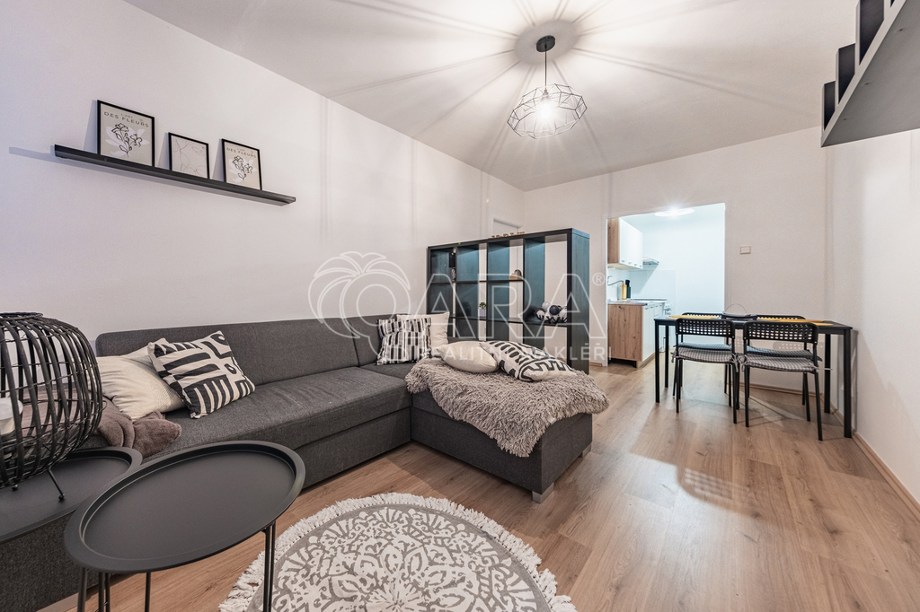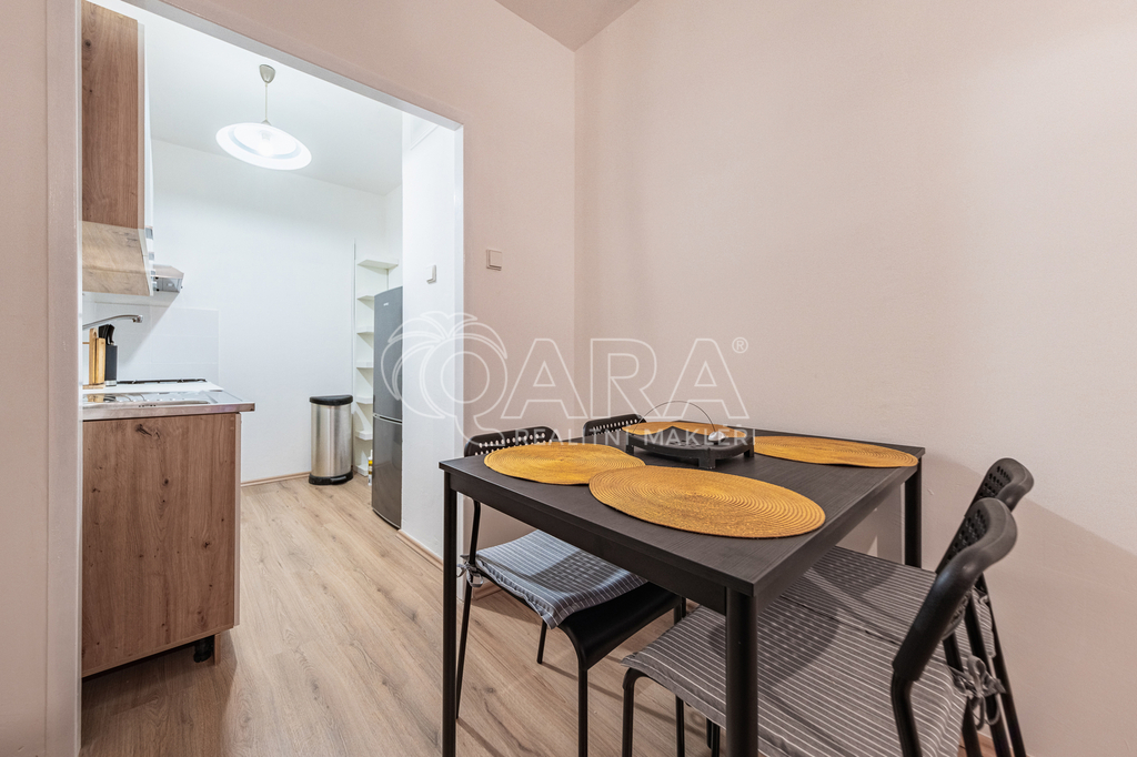 Byt prošel celkovou rekonstrukcí, zděné bytové jádro - koupelna s vanou a toaletou. Nová kuchyňská linka s plynovým sporákem a troubou, nová lednice s mrazákem. Nové plovoucí podlahy. Byt se pronajímá částečně zařízený.