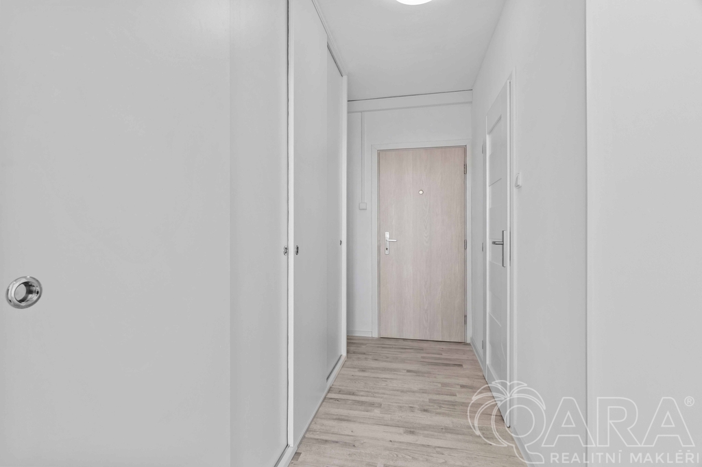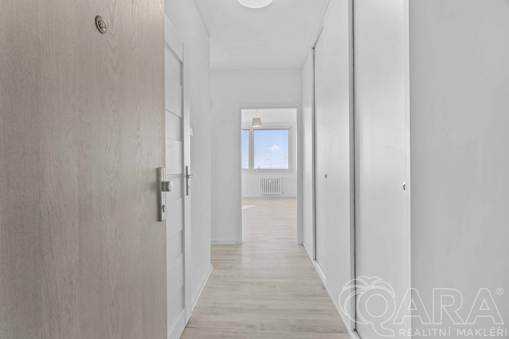 Dispozice bytu je velmi praktická – obývací pokoj s kuchyňským koutem, samostatná ložnice, chodba s velkou vestavěnou skříní a koupelna. Kuchyňská linka je vybavena plynovým sporákem, troubou a myčkou. Byt se pronajímá nezařízený, takže si jej můžete zařídit přesně podle svých představ. K bytu náleží také sklep.