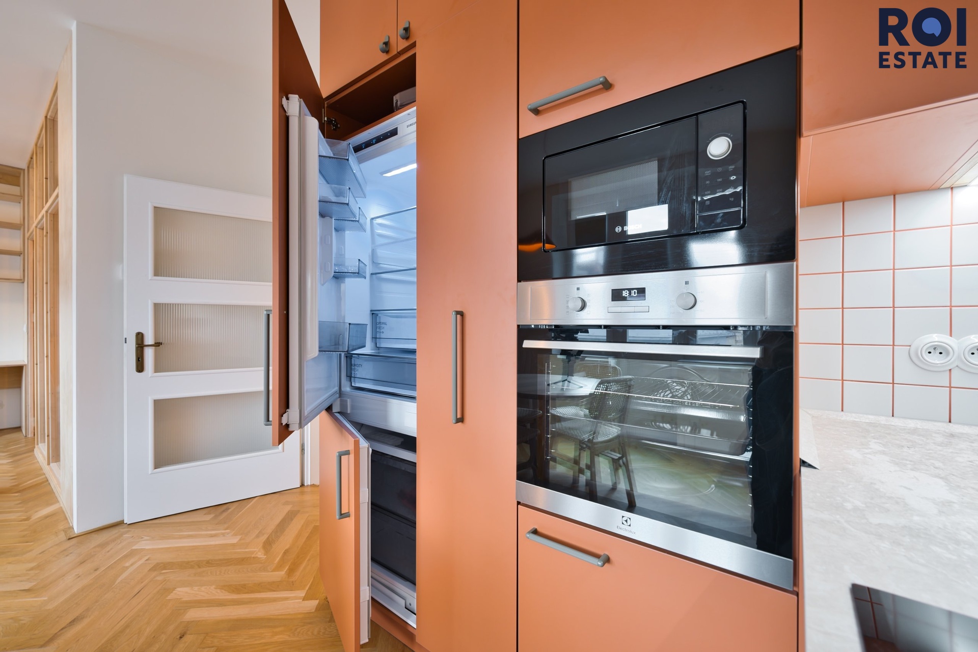 Kuchyně pro šéfkuchaře (i ohřívače): Linka na míru se všemi vychytávkami (myčka, trouba, mikrovlnka). Ideální pro přípravu tříchodového menu i pro bleskové ohřátí pizzy z vedlejší ulice.