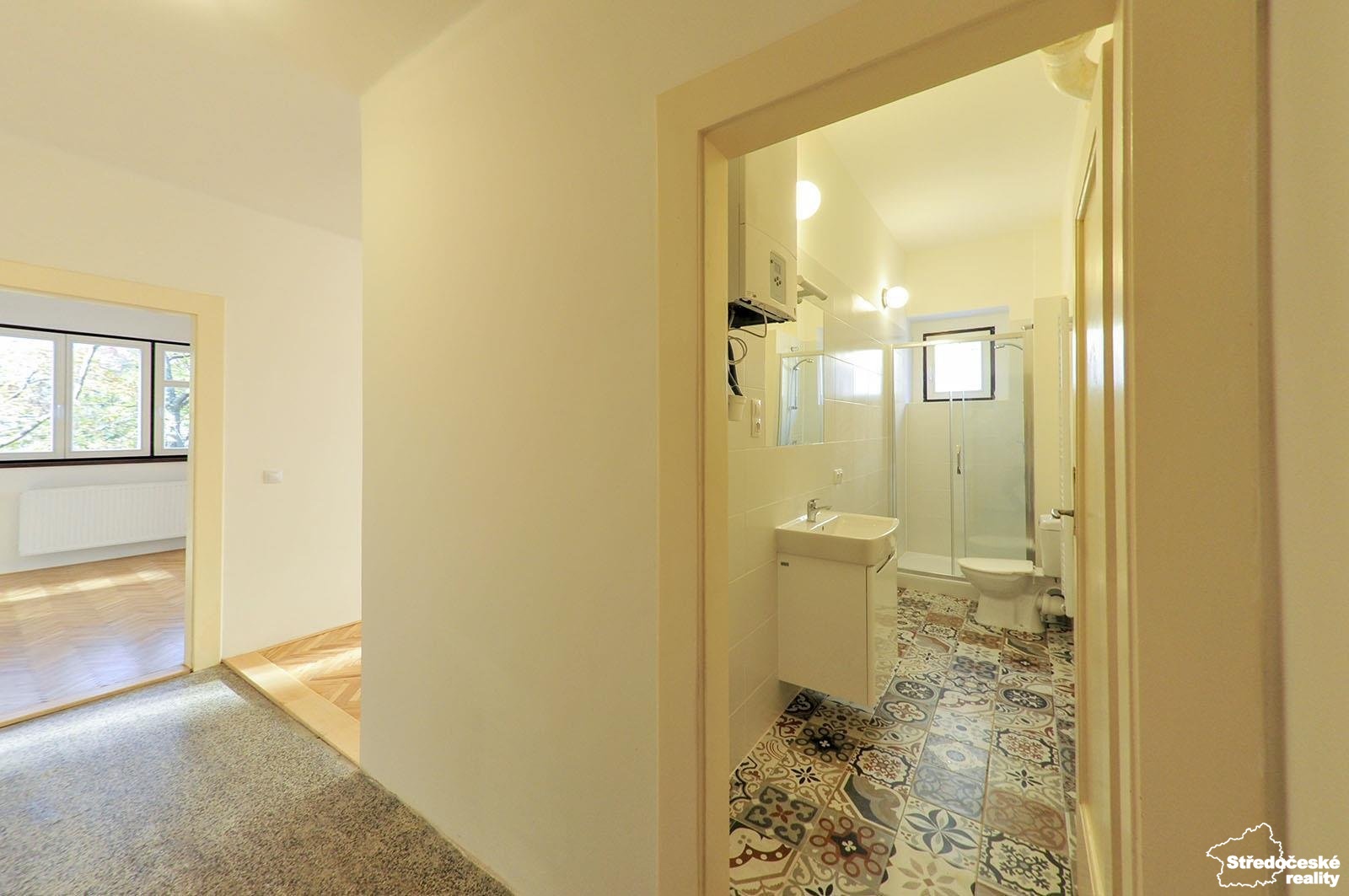 Vytápění a ohřev vody zajišťuje vlastní nový plynový kotel. Okna v bytě jsou dřevěná, v koupelně a na chodbě je podlahovou krytinou dlažba, v pokojích jsou repasované a nalakované parkety. V domě dostupnost Vodafone/UPC internetu.