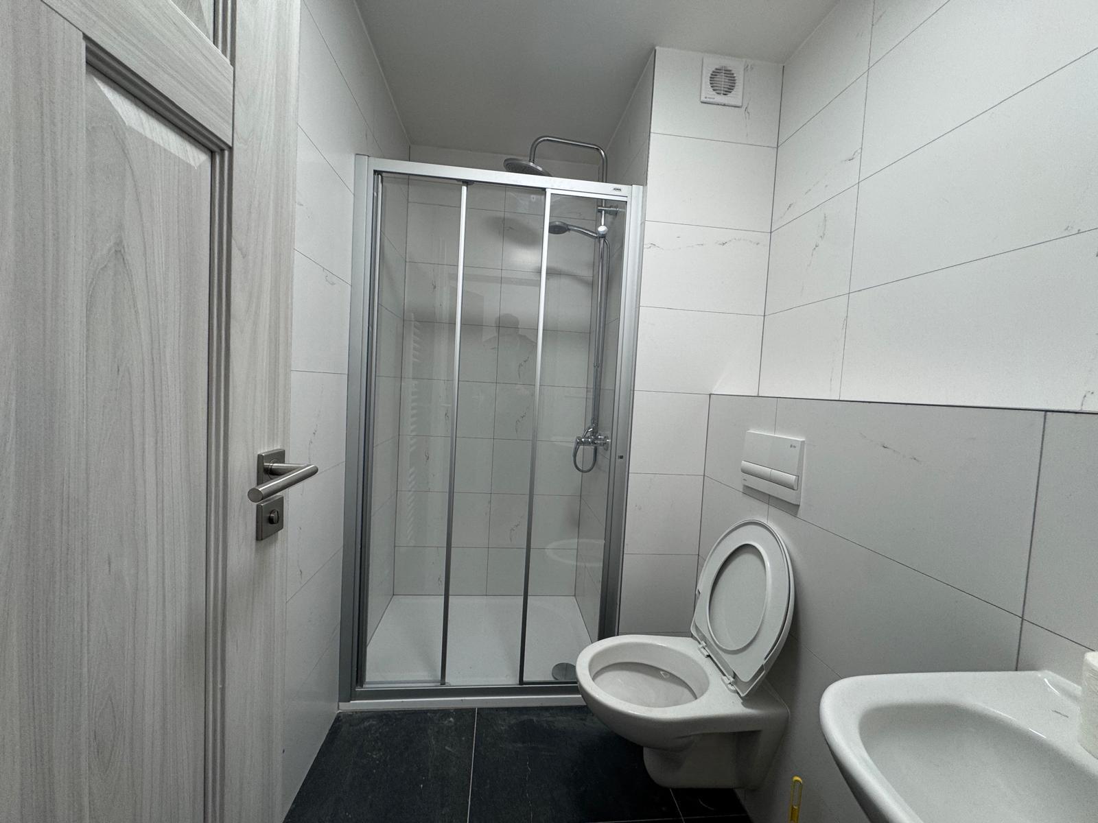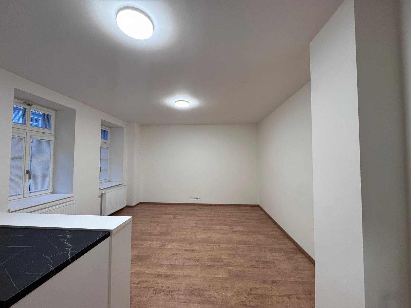 Byt je bez nábytku, k dispozici je plně vybavená kuchyňská linka včetně spotřebičů. Koupelna je se sprchovým koutem a toaletou.