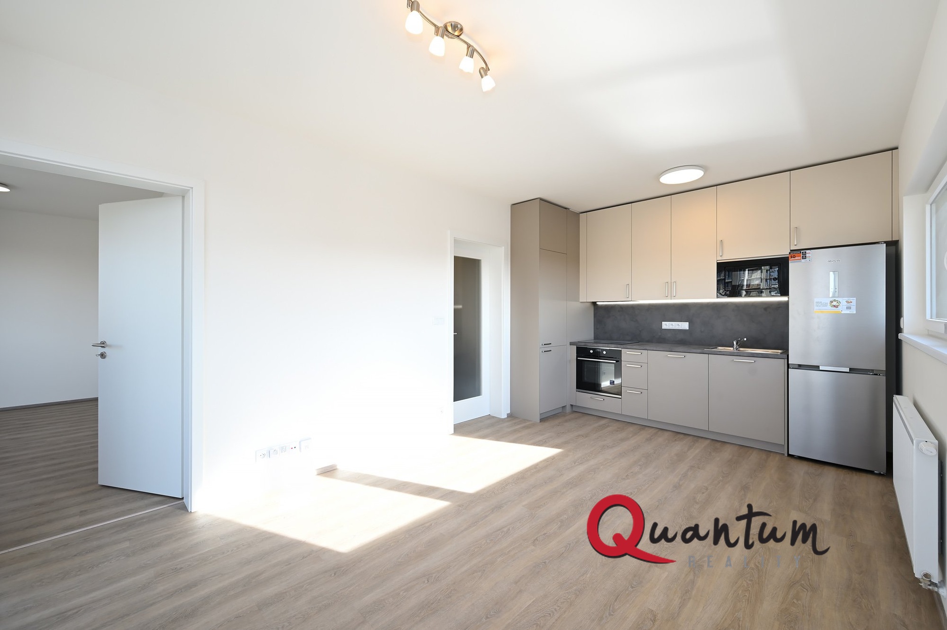 2. Plně vybavená kuchyňská linka s moderními spotřebiči (trouba, varná deska, lednice, myčka).