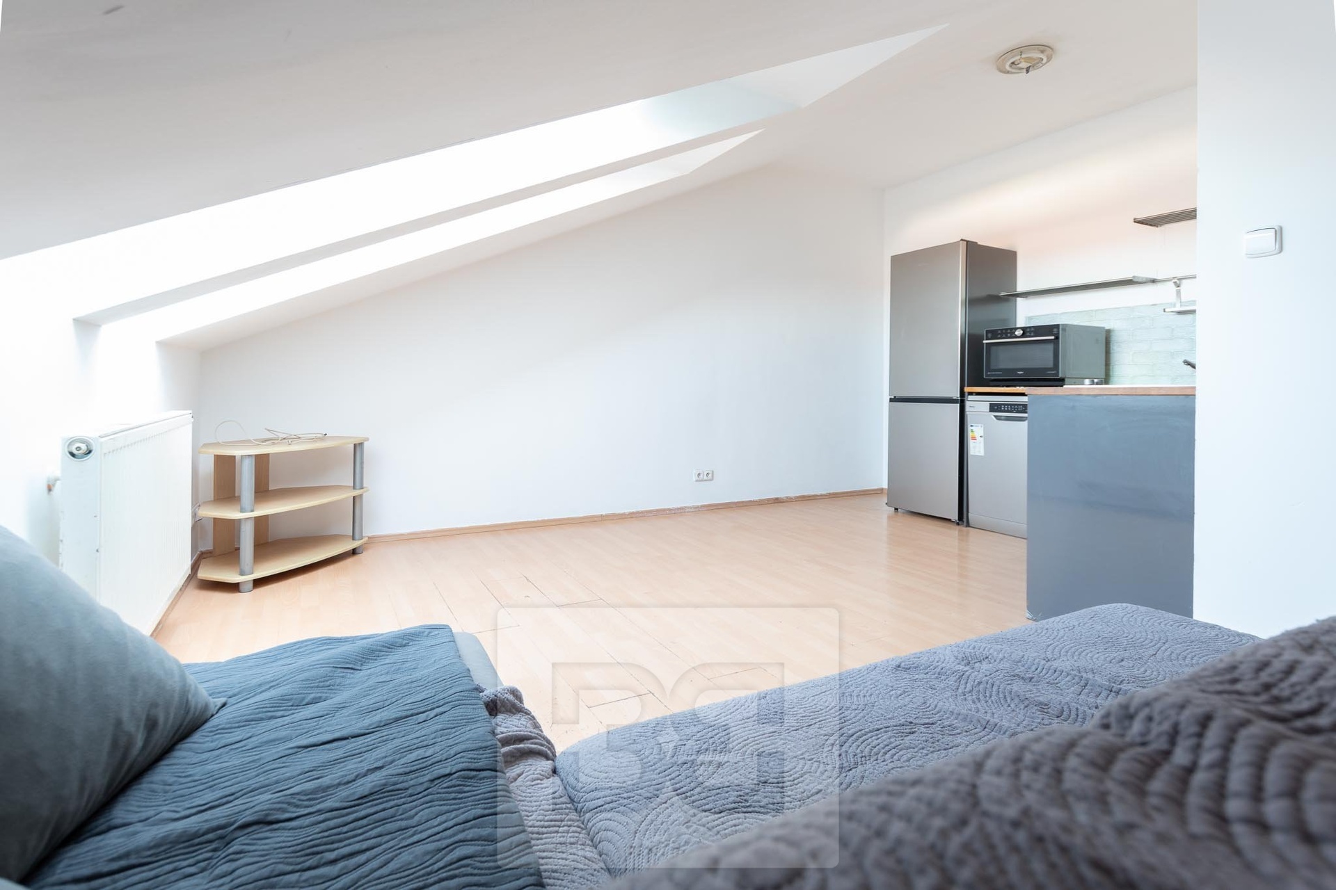 Nabízíme Vám k pronájmu byt 2+kk s obytnou plochou 51 m², situovaný v posledním patře cihlového domu s výtahem, v ulici Mladých Běchovic 2a. Byt se sestává ze vstupní chodby, koupelny se sprchovým koutem a toaletou, ložnice a obývacím prostorem propojeným s kuchyní vybavenou elektrickým sporákem, troubou, myčkou nádobí a lednicí. V obývacím pokoji najdeme pohovku, vestavnou skříň s pračkou a kancelářský kout. Ložnice nabízí další úložné prostory a postel. Cca 1 rok stará matrace může v bytě zůstat, nebo jí můžete vyhodit.