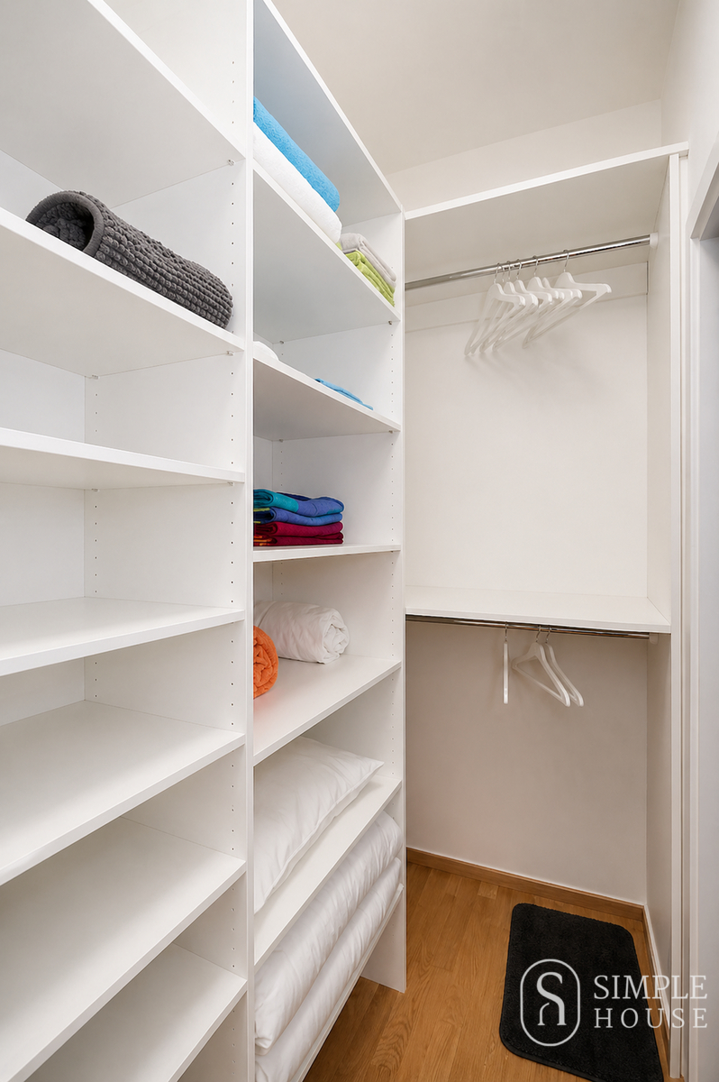 Koupelna je vybavena vanou, umyvadlem, závěsným WC a pračkou AEG. Na oknech jsou žaluzie, v bytě jsou dřevěné podlahy a dlažba. Na balkoně je stolek se dvěma židlemi.