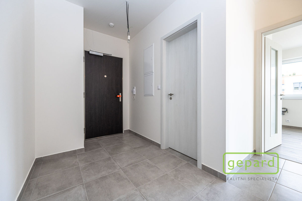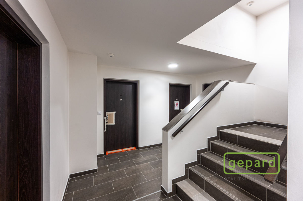 Realitní společnost Gepard nabízí exkluzivně k dlouhodobému pronájmu bytovou jednotku v novostavbě o dispozici 2+kk, s podlahovou plochou 52,7 m2, lodžií, sklepem a garážovým stáním v bytovém domě v ulici Měchnovská, na rozhraní Záběhlic a Chodova. Byt se nachází ve 4.NP (3. patro) moderního bytového domu, který je součástí rezidenčního projektu Výhledy Chodovec . Dům je bezbariérový s výtahem. Orientace oken je na severozápad a jihozápad. Je zde předsíň (8 m2), koupelna s WC a místem pro pračku (3,9 m2), ložnice (12,6 m2) a obývací pokoj s kuchyňským koutem (24,9 m2). Lodžie (4,9 m2) je přístupná z ložnice i obývacího pokoje. K bytu patří sklep umístěný v suterénu domu (3,6 m2). K dispozici je kuchyňská linka vybavená velkou lednicí s mrazákem, myčkou, el. troubou, indukční varnou deskou a digestoří. Bytová jednotka má bezpečnostní vstupní dveře, vytápění je centrální, je zde internetová přípojka, společná anténa, okna v obývacím pokoji jsou vybavená elektrickými venkovními roletami. Nájemné je 23.800,- Kč měsíčně + zálohy na služby 3.100,- Kč + záloha na elektřinu 1.000,- Kč. Kauce 25 000,00 Kč. Na začátku pronájmu hradí nájemce vratnou kauci, první nájemné včetně záloh na služby a provizi RK ve výši 25.000,- Kč včetně DPH . V okolí je veškerá občanská vybavenost, autobusem je možné se dostat na nejbližší stanici metra Chodov asi za 9 minut. Blízko je Hostivařská přehrada, lesopark, cyklostezky, plavecký stadion, obchodní centrum Westfield Chodov.