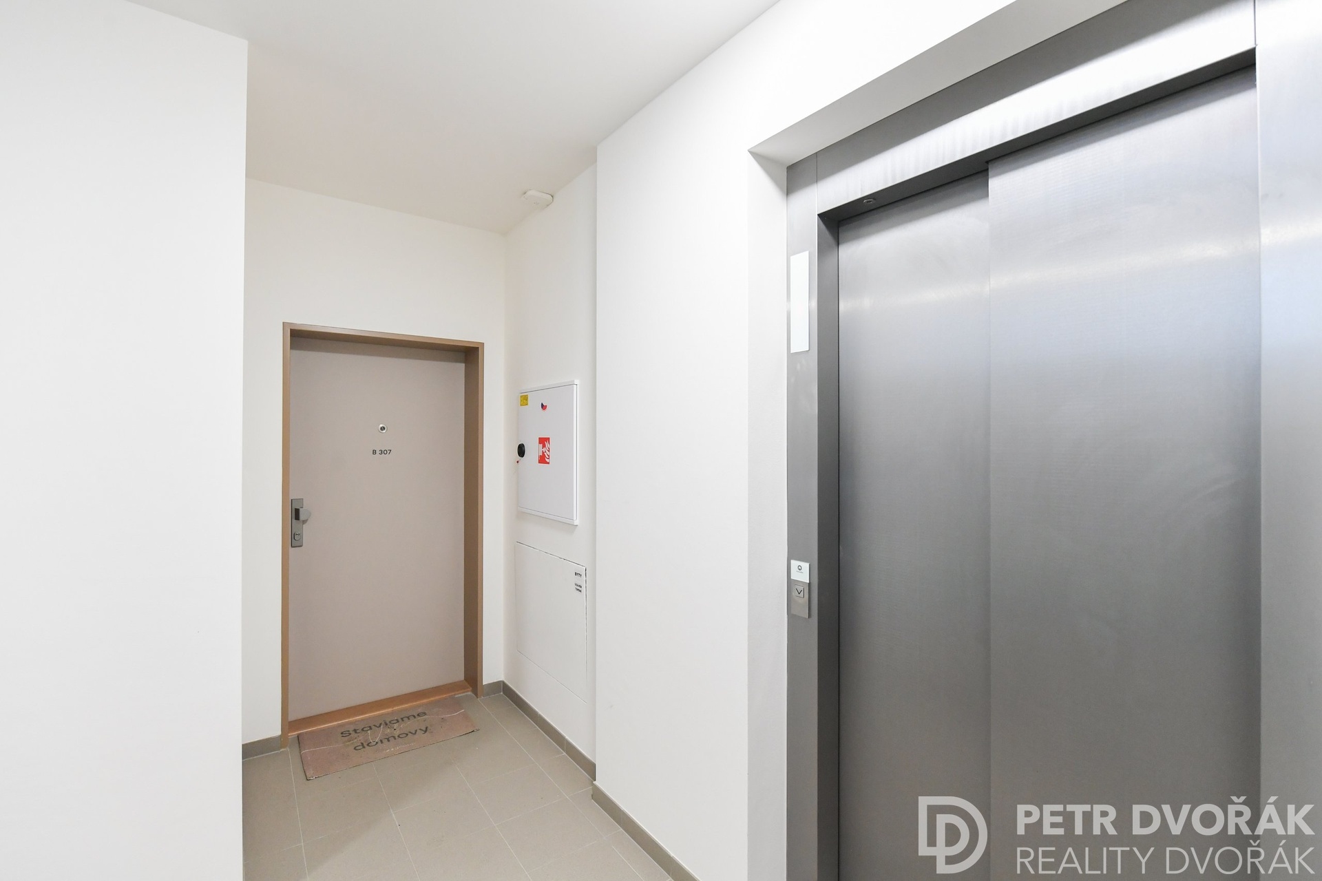 Součástí pronájmu je sklepní kóje (4 m²) a garážové stání v podzemních garážích domu. Dům je vybaven výtahem a bezbariérovým přístupem.