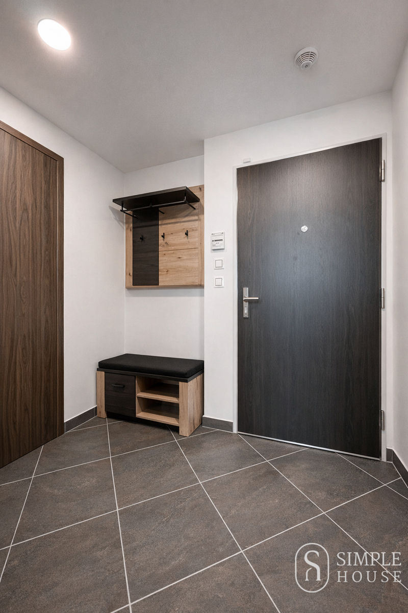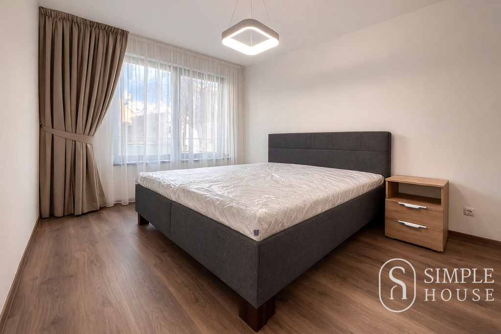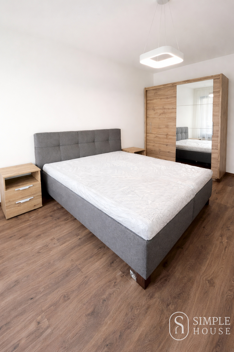 Obývací část je vybavena sedací soupravou, konferenčním stolkem, jídelním stolem se židlemi a Smart TV s obývací stěnou. Kuchyňská linka disponuje indukční varnou deskou s troubou, vestavěnou mikrovlnnou troubou, kombinovanou lednicí s mrazákem, digestoří a rychlovarnou konvicí.Ložnice nabízí manželskou postel s matracemi, noční stolky a prostornou šatní skříň.V koupelně se nachází vana se sprchovou zástěnou, pračka se sušičkou, umyvadlo s úložným prostorem a zrcadlo s osvětlením.