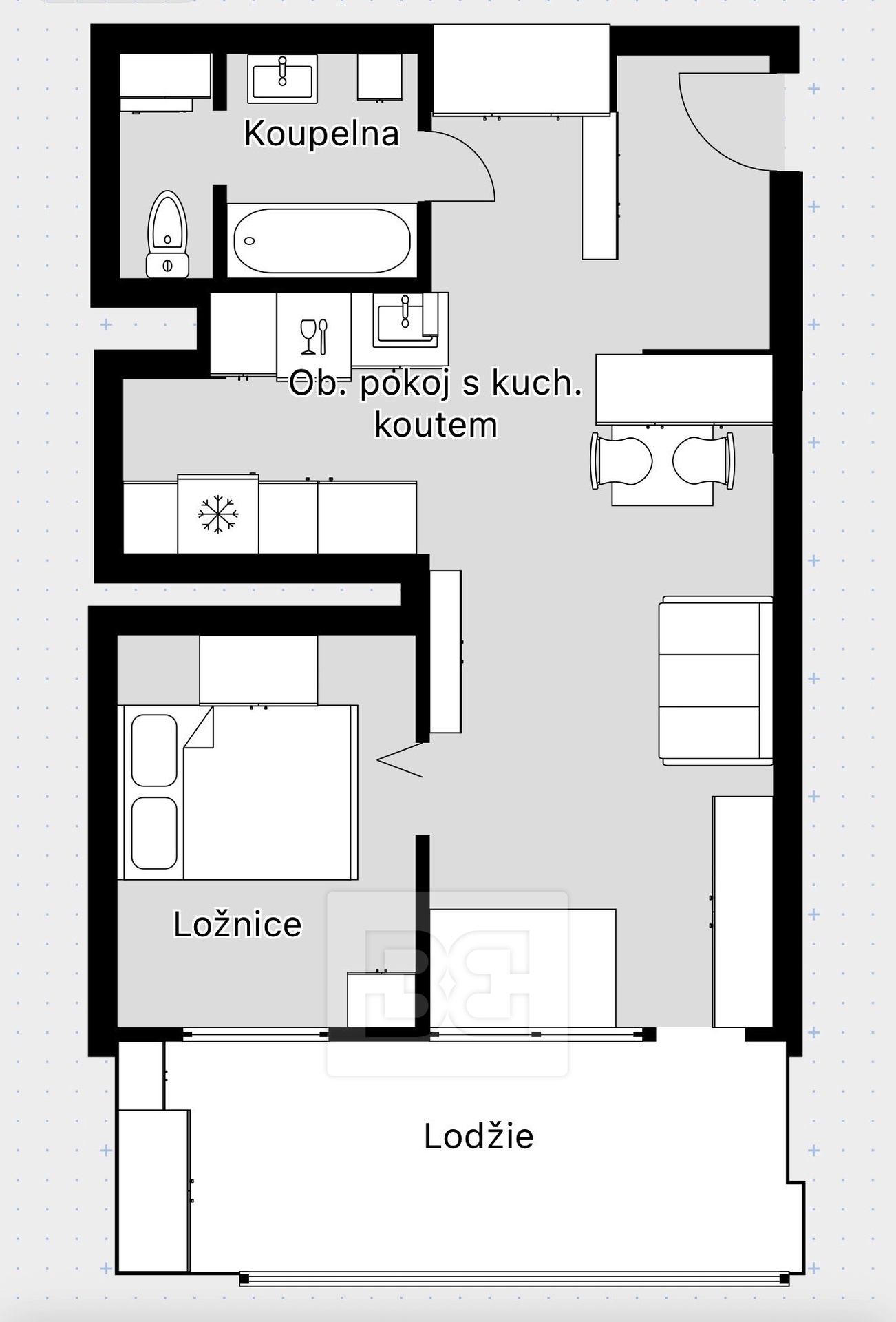 Dispozice bytu:2+kk