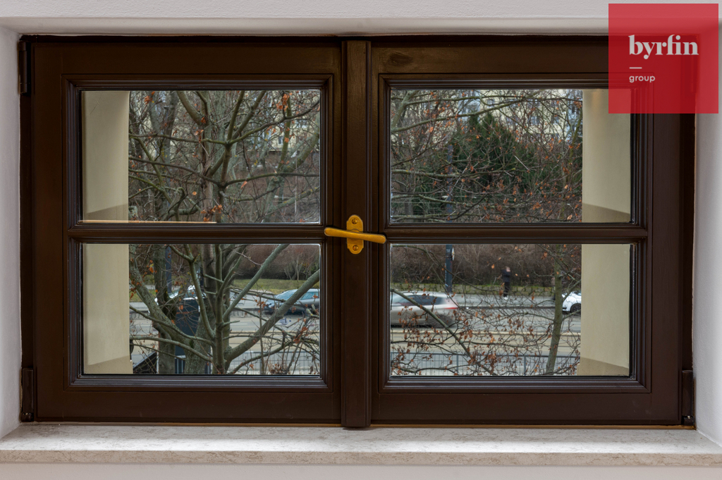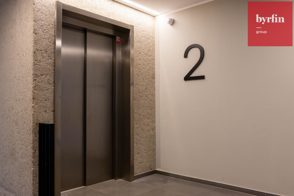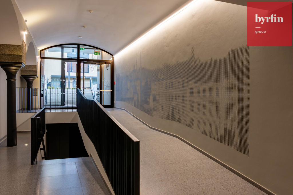 Rezidence je přístupná přes novou lávku a obchodní pasáž. Loftový byt, kde jsou zachovány původní dřevěné trámy, je dispozičně řešen jako 2+kk, 56 m2, v ceně je garážové stání a prostorná sklepní kóje.
