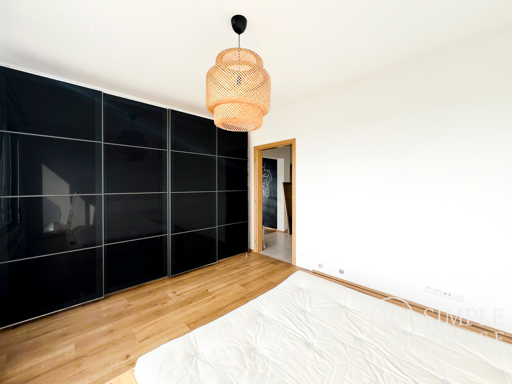 Dále je zde prostorná ložnice, která je vybavena manželskou postelí s japonským futonem a vestavěnou skříní. Při vstupu do bytu se nachází chodba s vestavěnou skříní, která poskytuje dostatek úložného prostoru. Koupelna je vybavena vanou se sprchou, sušičkou a pračkou. Toaleta je samostatná.