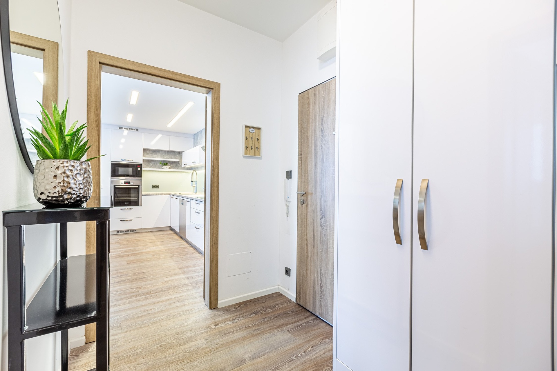 Tento velmi pěkný byt se nachází ve 3. NP v domě s výtahem, jeho podlahová plocha je 51 m² + balkon 7m² + garážové parkovací stání v 1. PP domu.