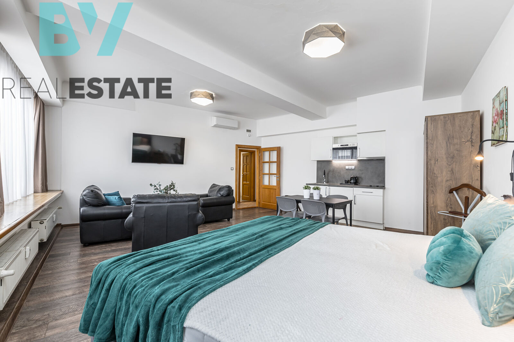 V zastoupení majitele uvádíme do nabídky k pronájmu krásný a stylový byt po kompletní rekonstrukci z roku 2019 o celkové výměře 58 m2, nacházející se v 4. patře budovy v centru Prahy - ulice Spálená. Dispozičně je byt řešen jako 2+kk: obývací prostor s kuchyňským a jídelním koutem, samostatná ložnice, předsíň, koupelna se sprchovým koutem, a toaletou. Byt byl rekonstruován s citem pro zachování stylu celého domu. Pro rekonstrukci byly použity kvalitní materiály i vybavovací prvky. Byt je vybaven novou kuchyňskou linkou, mikrovlnou troubou, varnou deskou, vestavěnou lednicí a základním kuchyňským vybavením /skleničky, hrnečky, talíře, příbory, varná konvička apod./ Vybavení nábytkem dle fotografií, / kromě ložené sedací soupravy/, které lze upravit podle přání nájemníka. Vytápění je řešeno dálkově, ohřev teplé vody zajišťuje bojler umístěný v koupelně. Žít v centru Prahy je pro většinu z nás srdcovou záležitostí.Bydlením v této lokalitě si můžete užívat krásné atmosféry místních kavárniček a restaurací, kulturních památek, divadel, hudebních klubů ale i parků. V docházkové vzdálenosti se nachází náplavka řeky Vltavy kde se dá sportovat i relaxovat a také Střelecký ostrov. Zastávky tramvají a metra "B" je přímo před domem, Václavské náměstí 5 minut pěšky. V místě je plná občanská vybavenost, obchody, služby apod. Naproti domu je známý obchodní dům "Máj" a hned vedle Quadrio. Platební podmínky: měsíční nájemné činí 25 721,- Kč, celkové paušální poplatky jsou 7 230,- Kč/měsíc. (teplo, teplá voda, elektřina, internet, odvoz odpadu, úklid společných prostor). Vratná kauce je ve výši 2 měsíčních nájmů. Při podpisu nájemní smlouvy je splatná provize RK 25 721,- Kč plus DPH. Byt je volný od 1.5.2026.