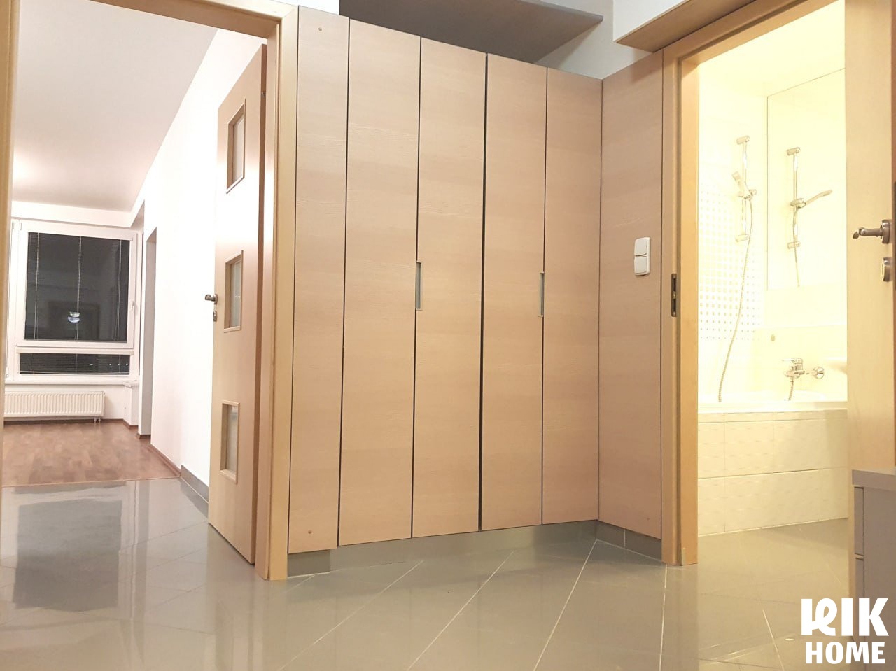 Prostorná vestavná skříň v ložnici, další skříň na chodbě spolu se závěsným botníkem a předsíňovou stěnou. K dispozici je také praktická komora přímo v bytě.