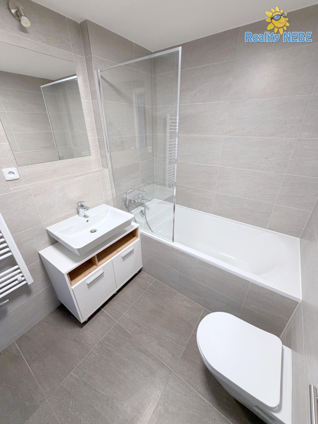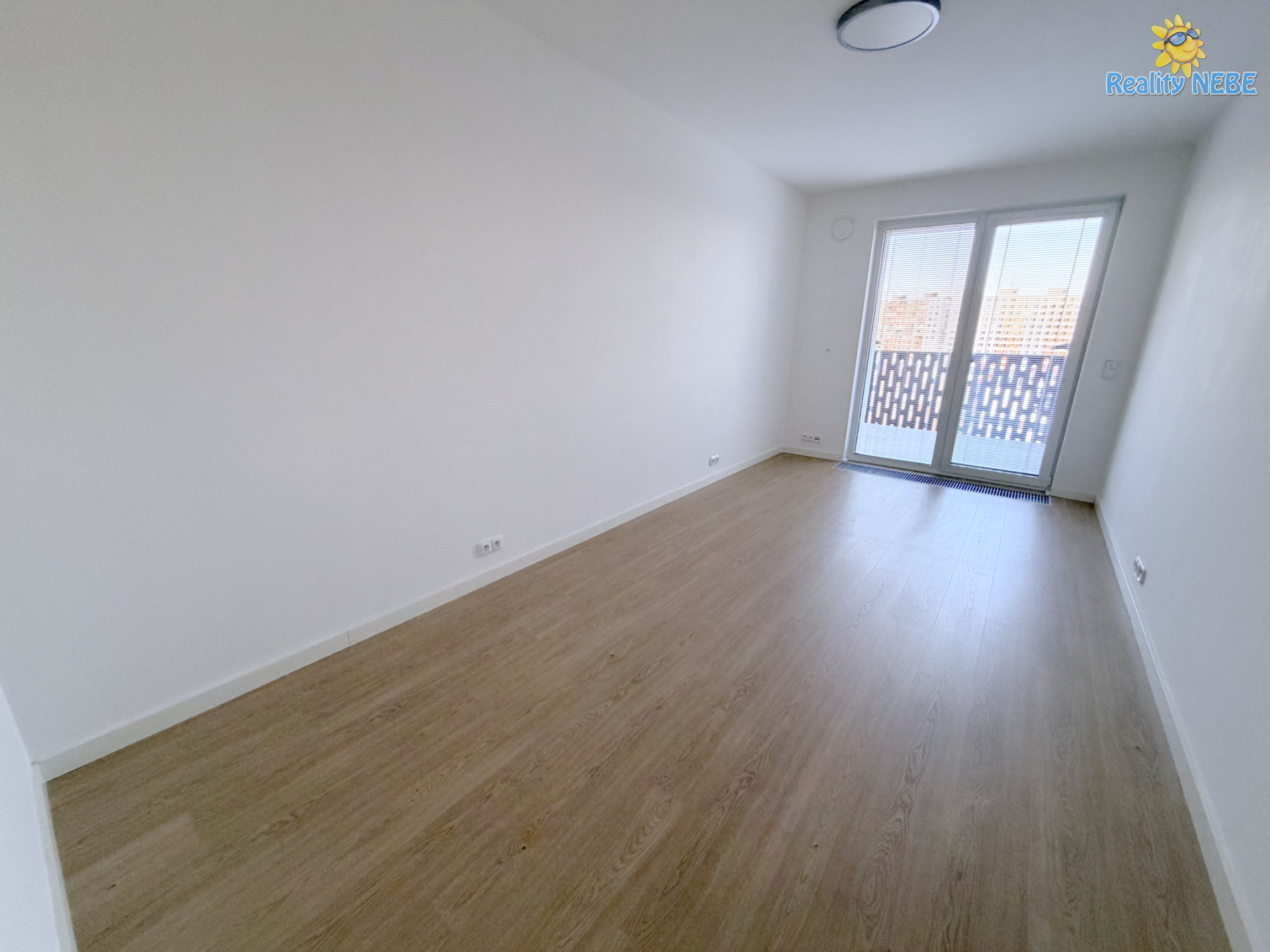Nabízíme k dlouhodobému pronájmu byt 2+kk, 60 m2 s balkonem 5 m2 v 7. patře novostavby na Praze 13 – Stodůlky, ulice Mukařovského. Byt se skládá z jedné samostatné ložnice, obývacího pokoje s plně zařízeným kuchyňským koutem (linka, lednice s mrazákem, el. trouba, varná deska, digestoř, myčka nádobí). Oba pokoje jsou propojeny balkonem se západní orientací, tedy sem slunce svítí celé odpoledne. Dále koupelna s vanou, WC a přípojkou na pračku, v bytě je prostorná vstupní chodba a komora. Náleží k němu až dvě parkovací stání.