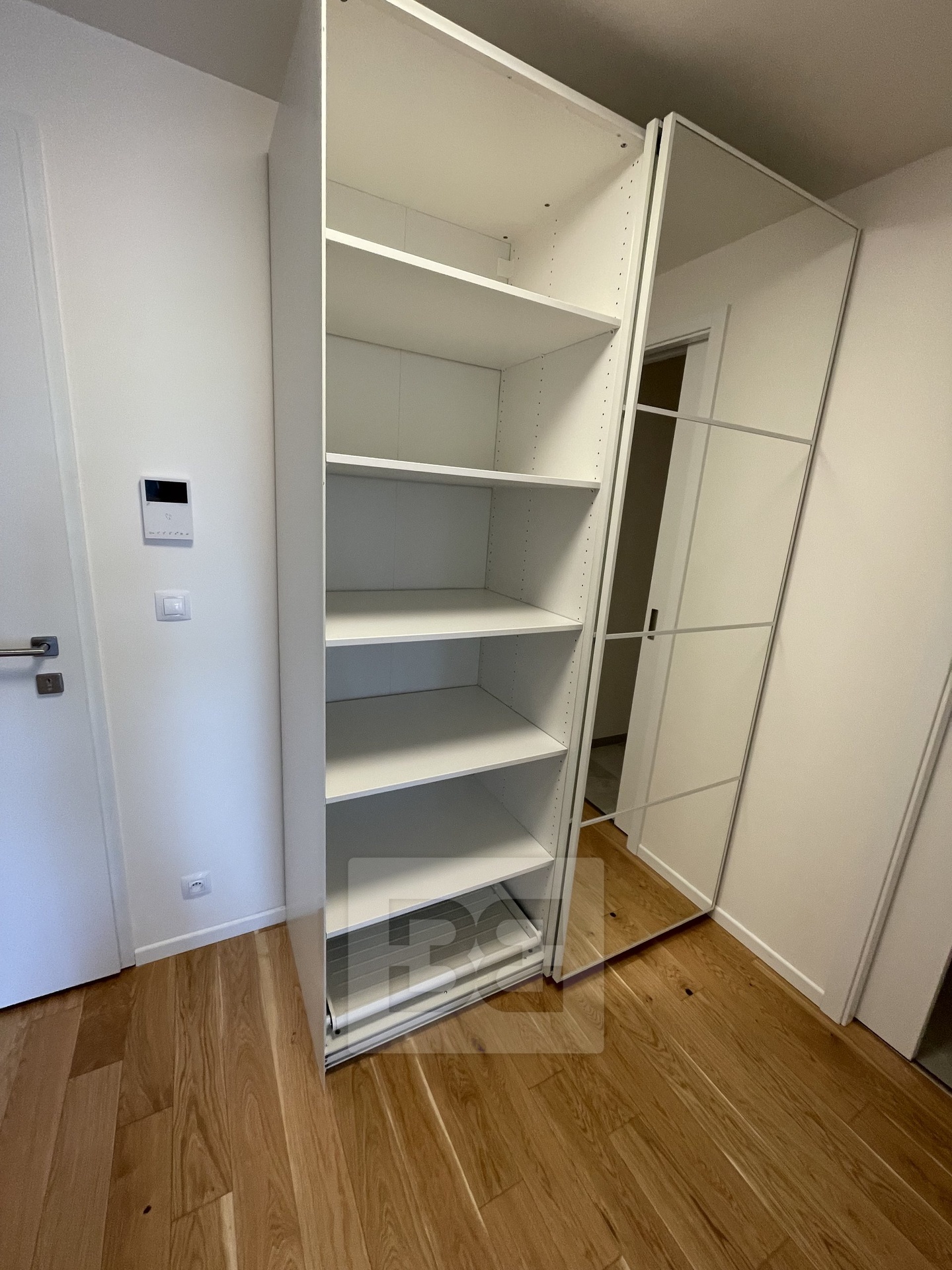 Byt se pronajímá jako nevybavený, součástí je pouze kuchyňská linka IKEA se spotřebiči, kuchyňský ostrůvek a skříň v chodbě a v ložnici.