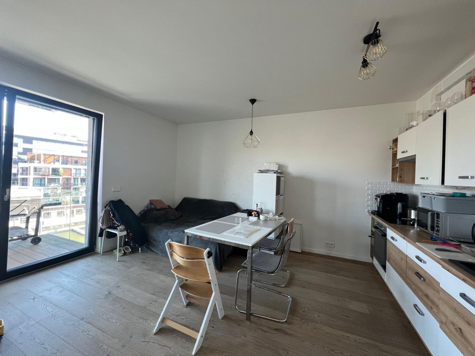 Interiér je kompletně zařízený moderním nábytkem a spotřebiči, připravený k okamžitému nastěhování bez dalších investic. Dispozice je praktická a vzdušná, ideální jak pro jednotlivce, tak pro pár.