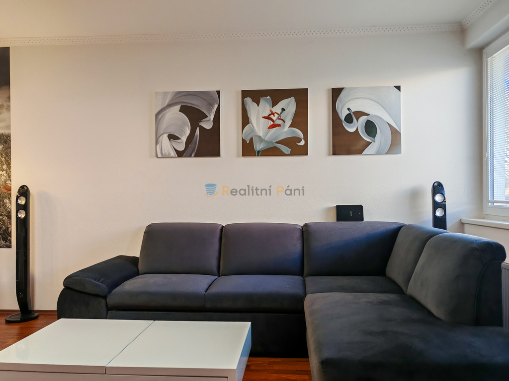 výbava nábytek: vybavená kuchyňská linka, 1x šatní skříň, L pohovka, obýváková stěna, jídelní stůl se 2 židlemi, 1x postel s nočními stolky