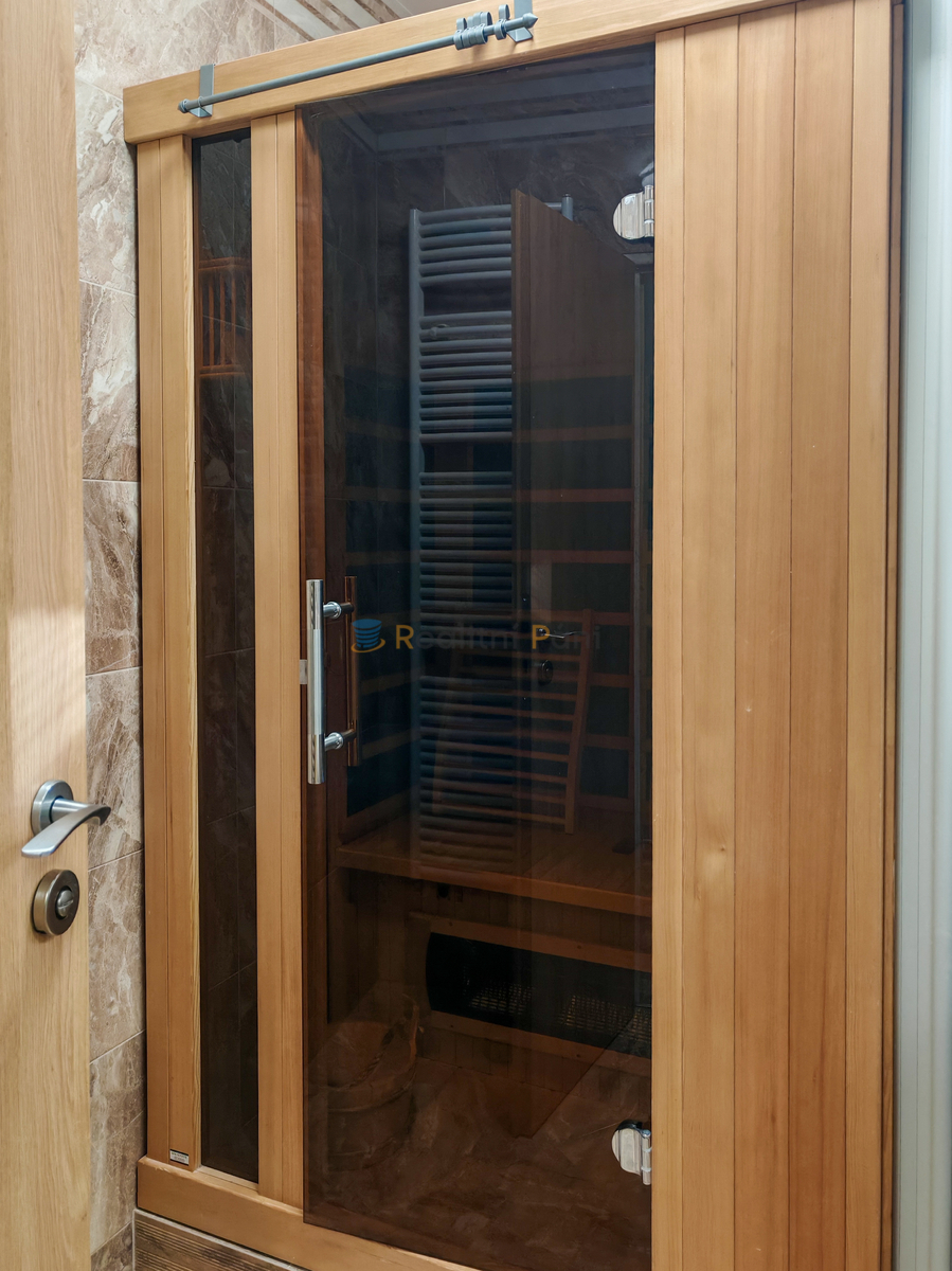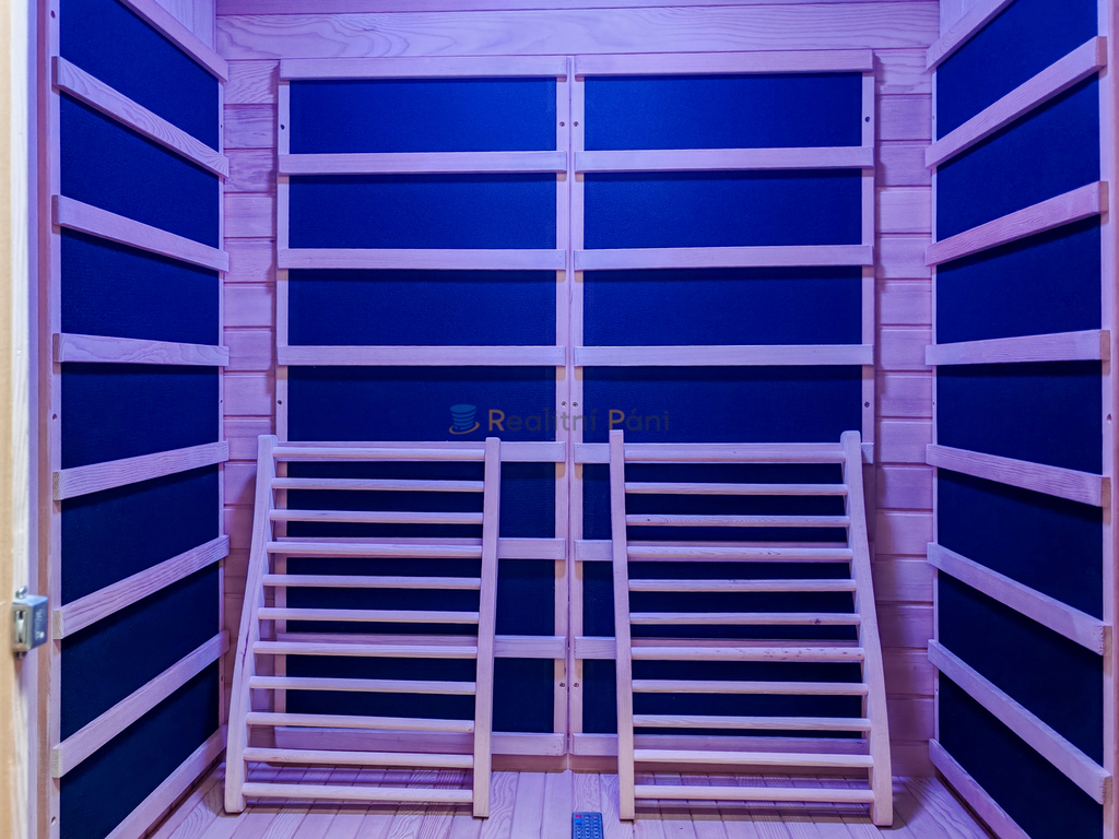 speciální detaily bytu: infrasauna, lihový krb, osvětlení na dálkové ovládání, centrální vysavač
