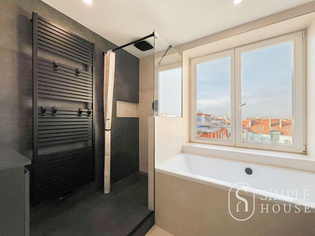 Nabízíme k dlouhodobému pronájmu elegantní, světlý a nově zrekonstruovaný byt o dispozici 2+kk a výměře 66 m², který se nachází v posledním, 9. podlaží krásného historického cihlového domu s výtahem. Byt prošel kompletní a velmi kvalitní rekonstrukcí, díky čemuž nabízí komfort moderního bydlení spojený s kouzlem klasické architektury pražských Vinohrad – vysoké stropy, velká okna a neopakovatelnou atmosféru.
