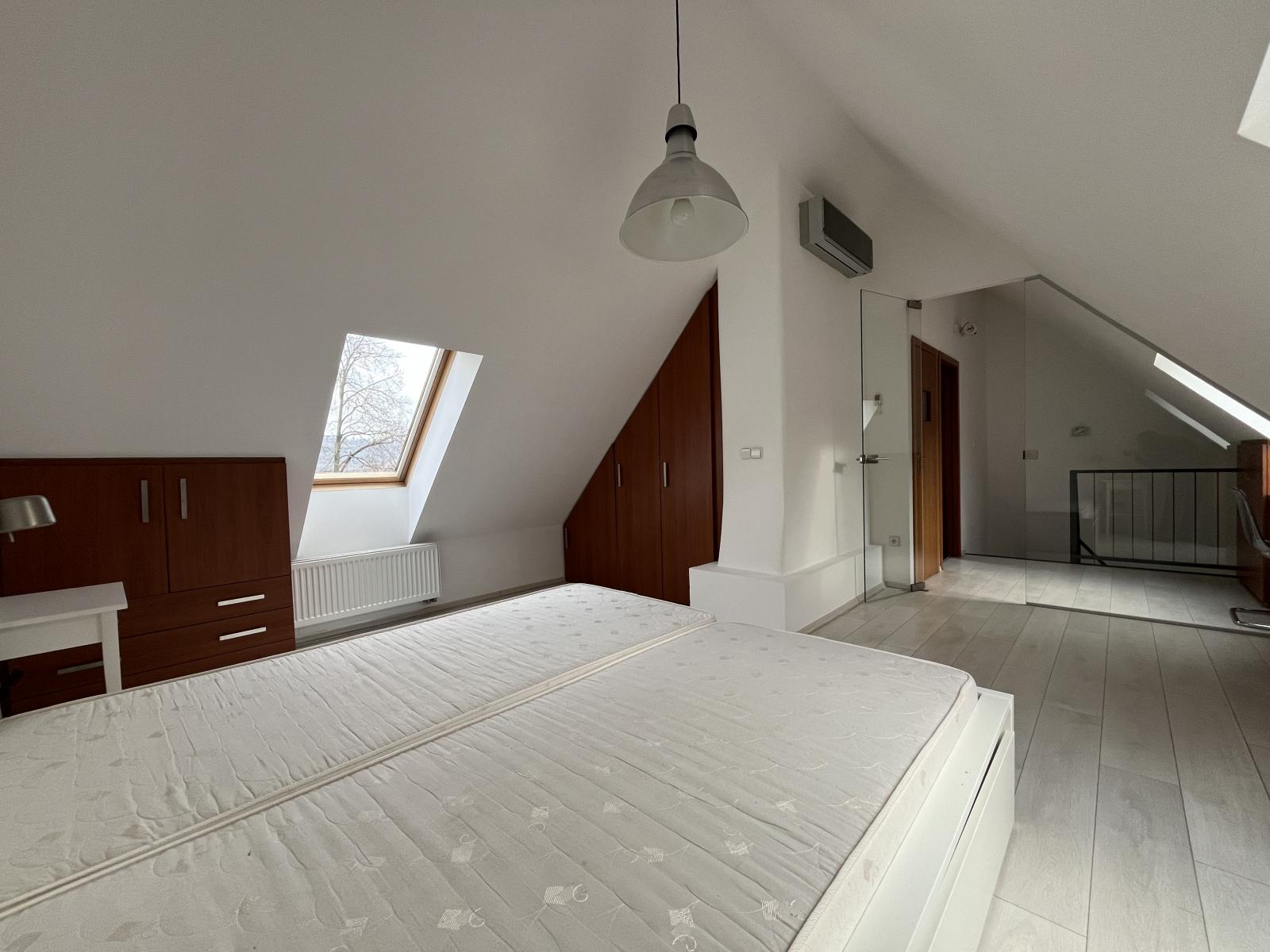 Nabízíme k dlouhodobému pronájmu atraktivní mezonetový byt 2+kk o velikosti 72 m and sup2; po rekonstrukci, nacházející se v klidné lokalitě Praha 5 Hlubočepy.