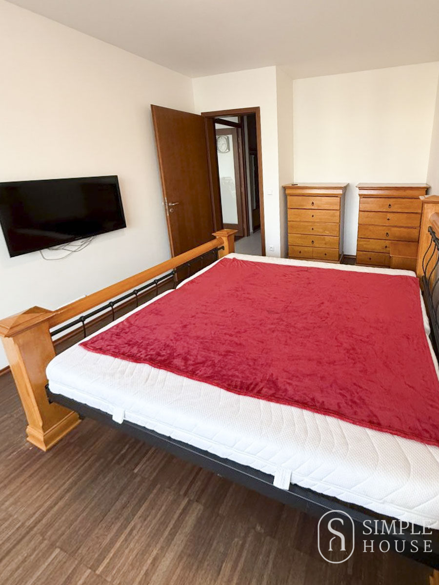 Byt se skládá z prostorného obývacího pokoje s kuchyňskou linkou a samostatné ložnice. K bytu náleží balkon o ploše 4 m². V obývacím pokoji se nachází plně vybavená kuchyňská linka se všemi spotřebiči, pohovka, jídelní stůl, televize a obývací stěna. V samostatné ložnici je manželská postel a televize.