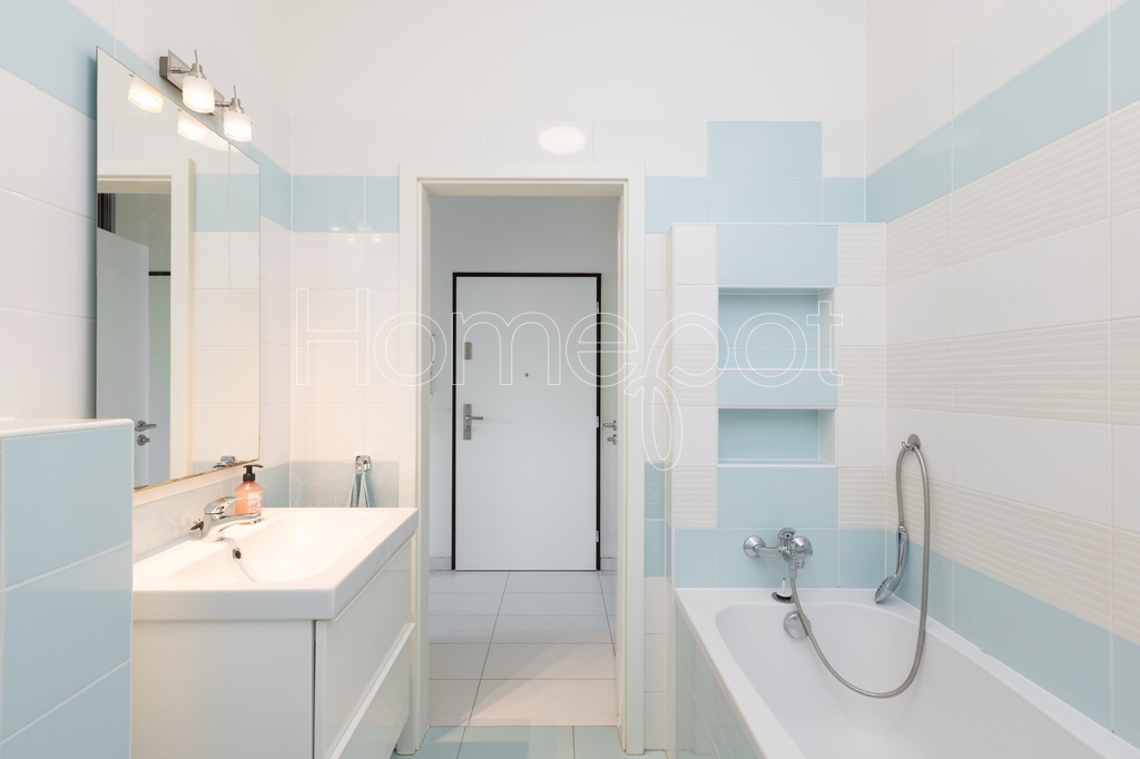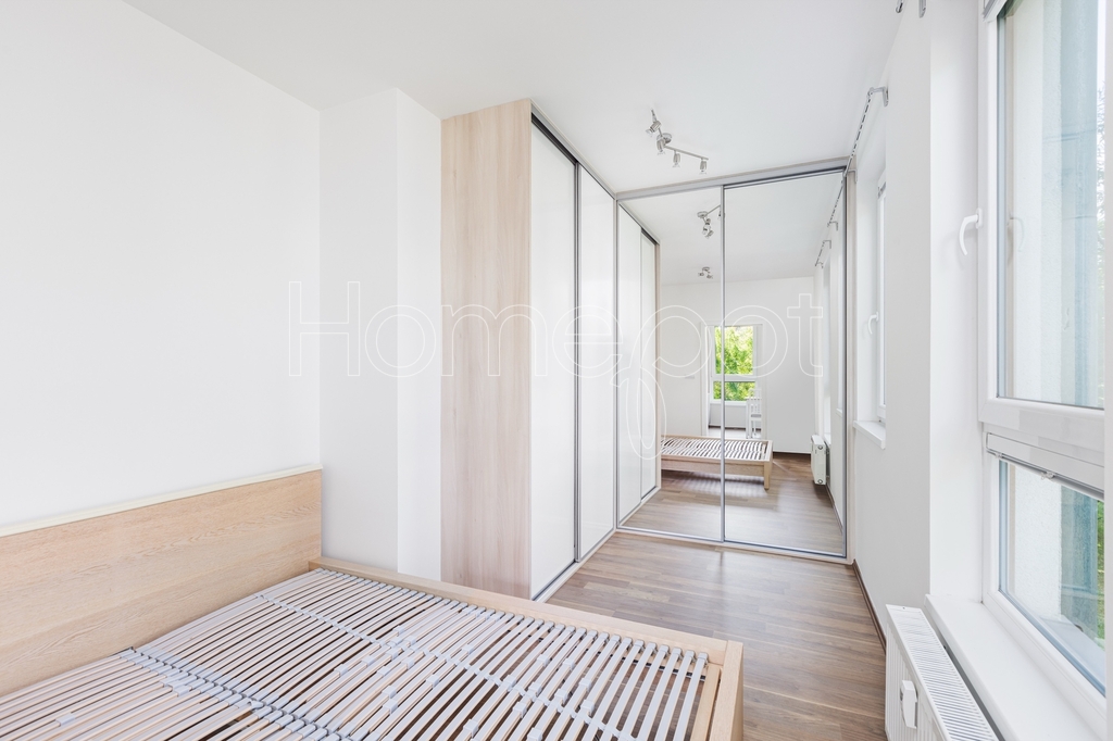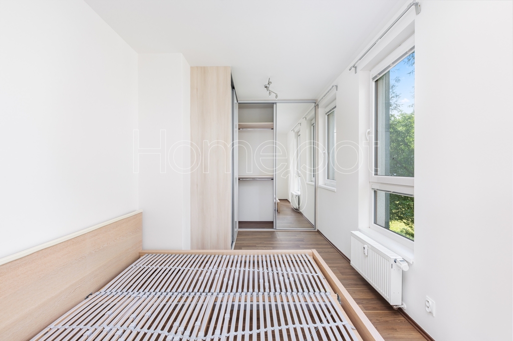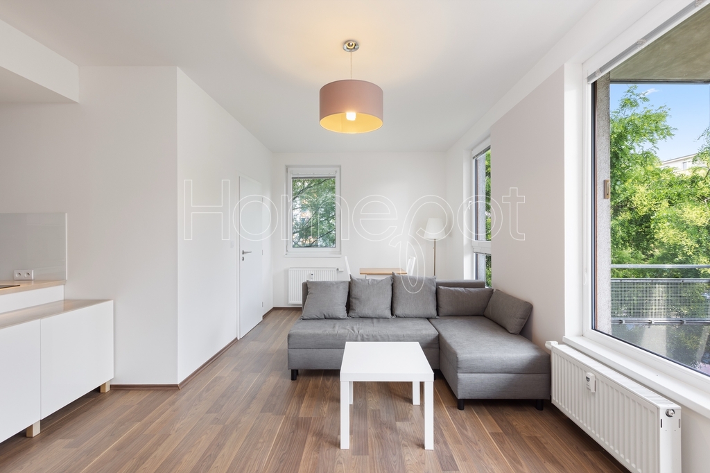 Jedná se o moderní, atraktivní byt, kde byl kladen důraz na dostatek úložného prostoru, praktičnost a vkusný design. Byt se pronajímá vybavený (viz fotografie v inzerci) a sestává z obývacího pokoje s přímým vstupem na balkon a kuchyňské části s plně vybavenou kuchyňskou linkou (myčka, trouba, indukční varná deska, digestoř, mikrovlnná trouba, lednice s mrazákem). Úložné prostory jsou chytře zakomponovány i do jídelního pultu. Balkon s výhledem do zeleně poskytuje příjemné zázemí k odpočinku – třeba u šálku oblíbeného čaje.