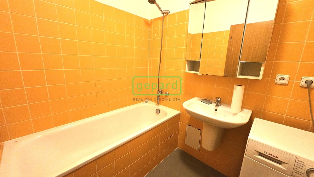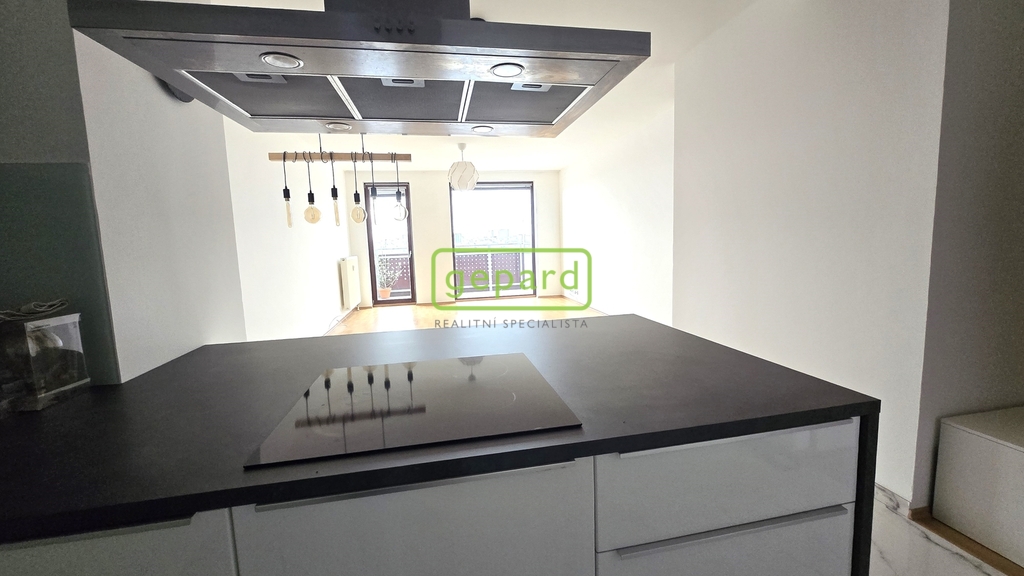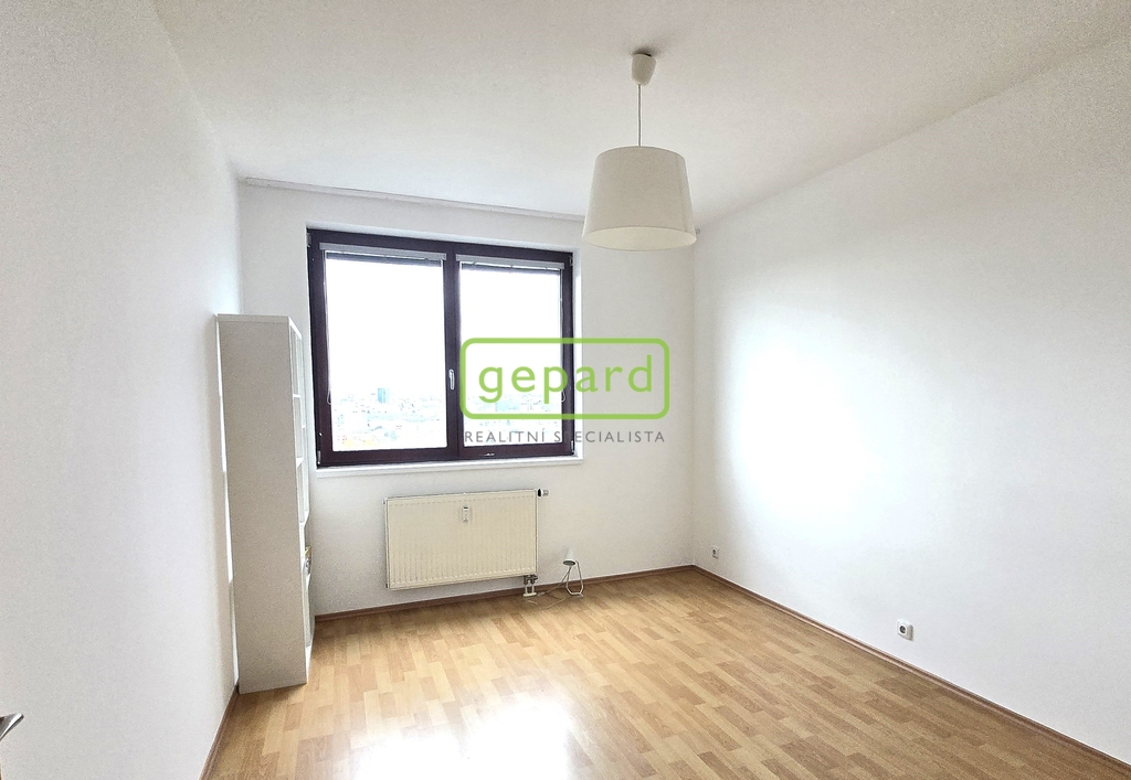 Byt se nachází v 9. NP domu a je orientován na jižní a západní stranu, s otevřeným výhledem na panorama Prahy. Z předsíně jsou samostatné vstupy do obývacího pokoje s kuchyňským koutem, ložnice, koupelny, WC a do komory.
