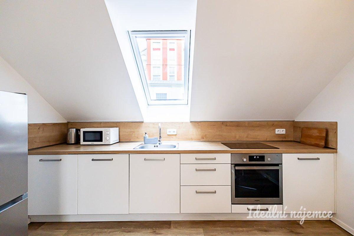 K dlouhodobému podnájmu nabízíme světlý byt o dispozici 2+kk v klidné lokalitě Praha-Čakovice. Byt o celkové výměře 50 m² se nachází v podkroví rodinného domu, který prošel kompletní rekonstrukcí a přestavbou. K bytu přísluší zastřešená terasa a společný sklep.