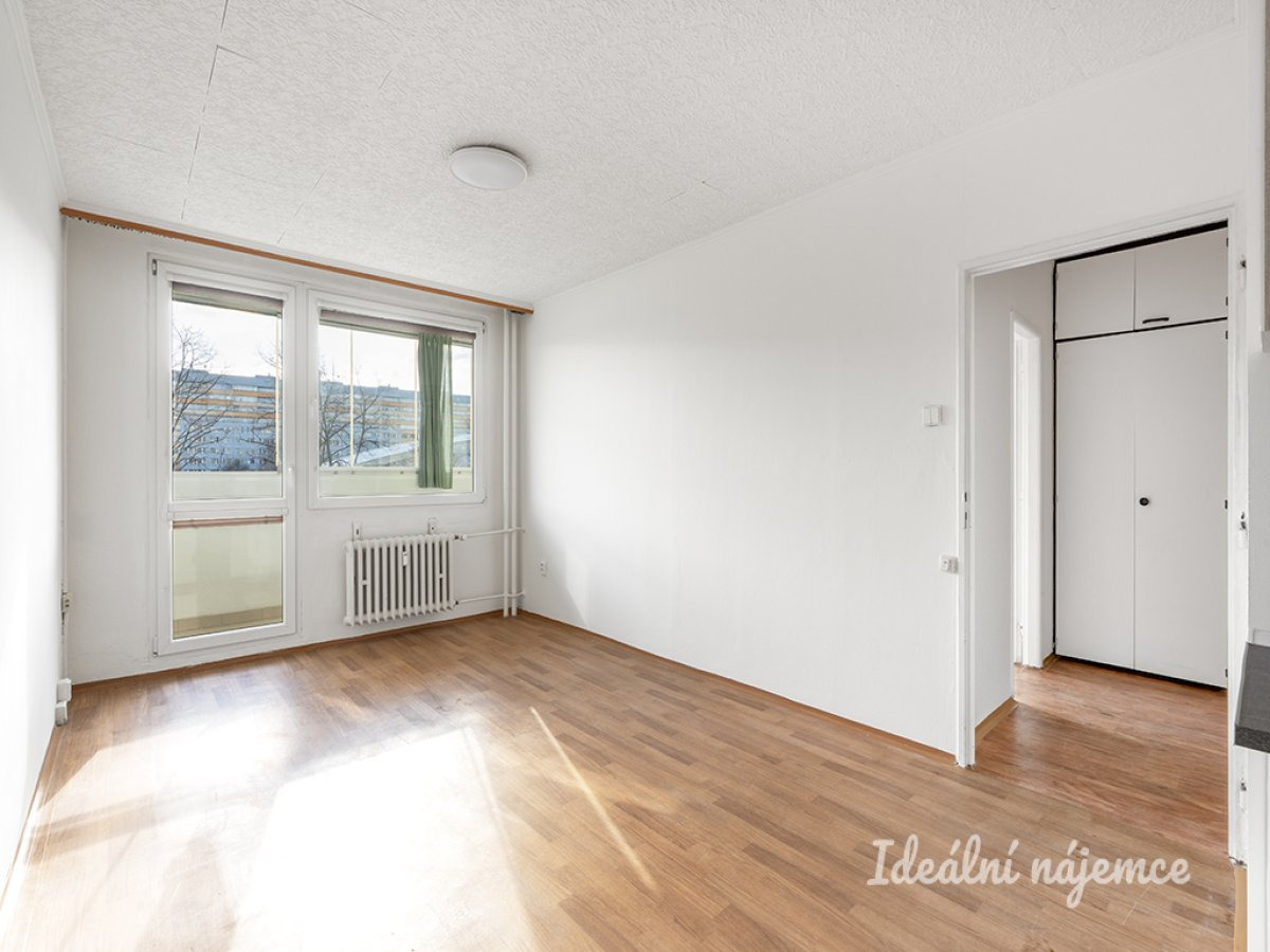 K dlouhodobému podnájmu nabízíme nezařízený byt o dispozici 2+kk, 43m2 s vlastní sklepní kójí a velkou zasklenou lodžií.