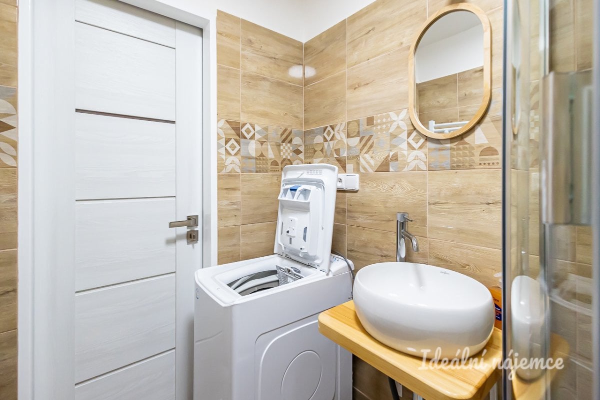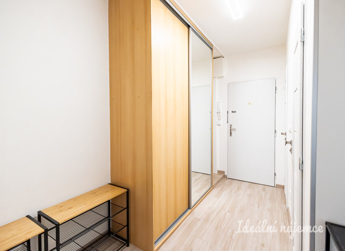 Nabízí se částečně vybavený. Nová kuchyně disponuje lednicí, elektrickou troubou, sklokeramickou varnou deskou a digestoří. Obývací část je zařízena pohovkou a konferenčním stolkem. Ložnice se nabízí nezařízená. Vkusná koupelna nabízí sprchový kout a pračku, toaleta je samostatně. V předsíni se nachází prostorné šatní skříně.