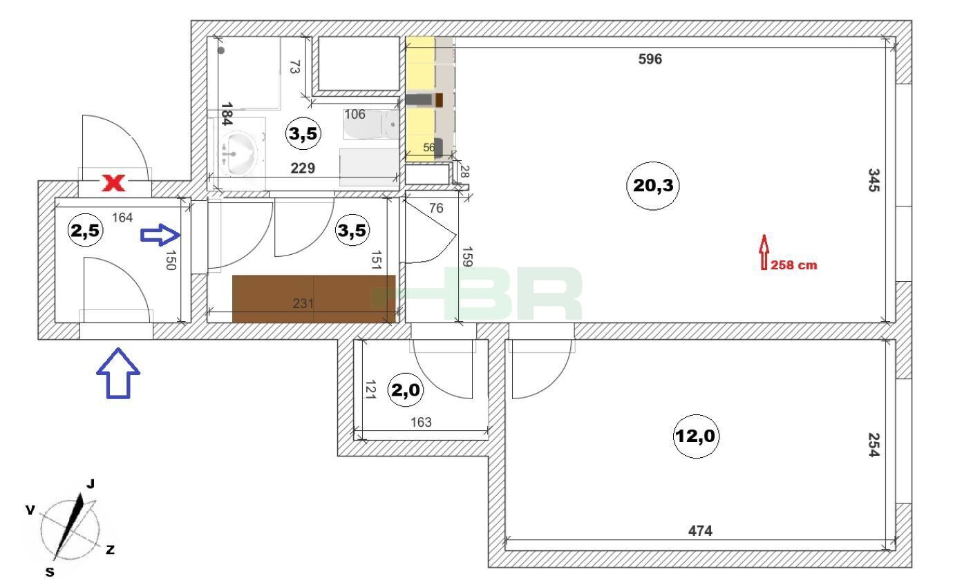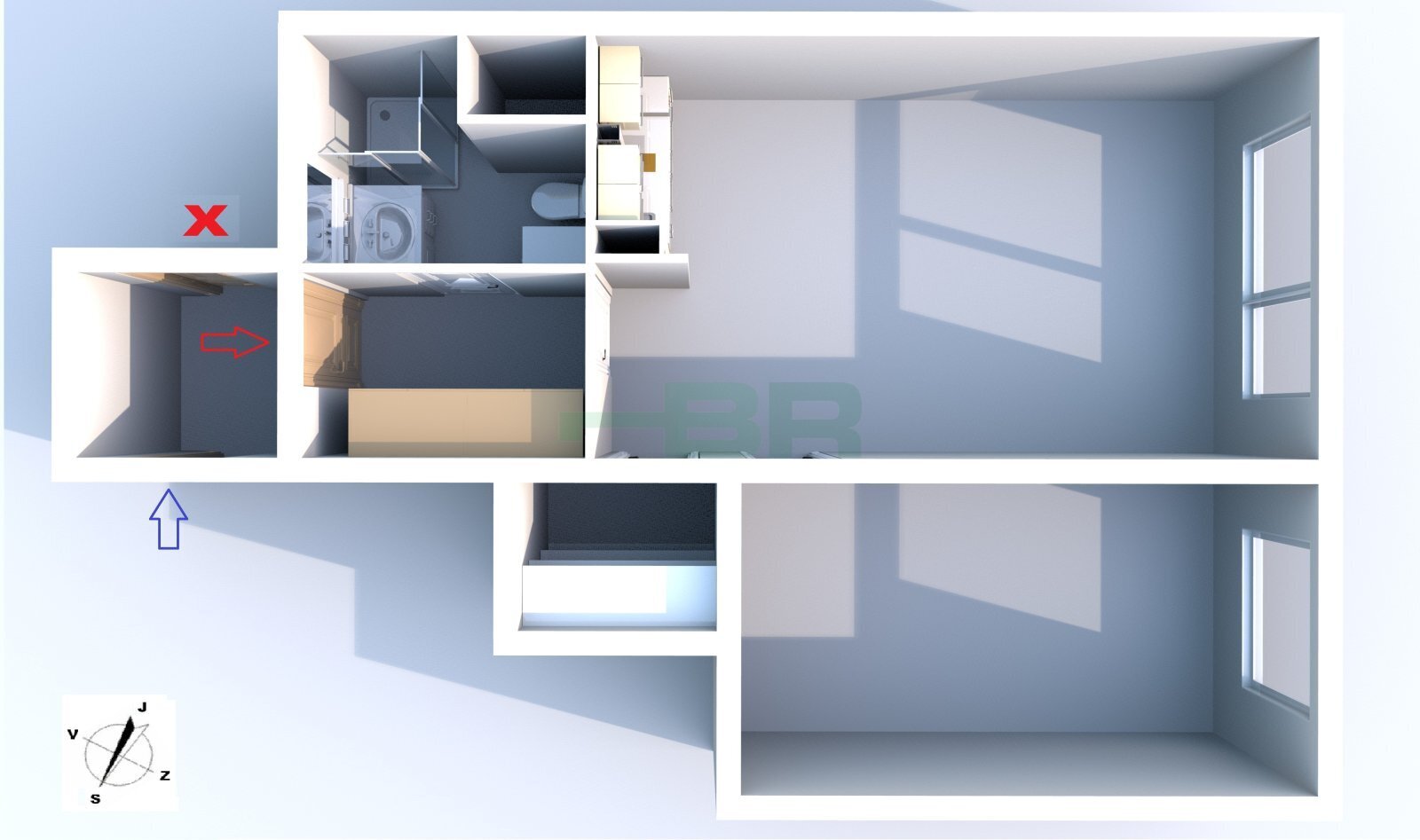 Dispozice bytu:2+kk