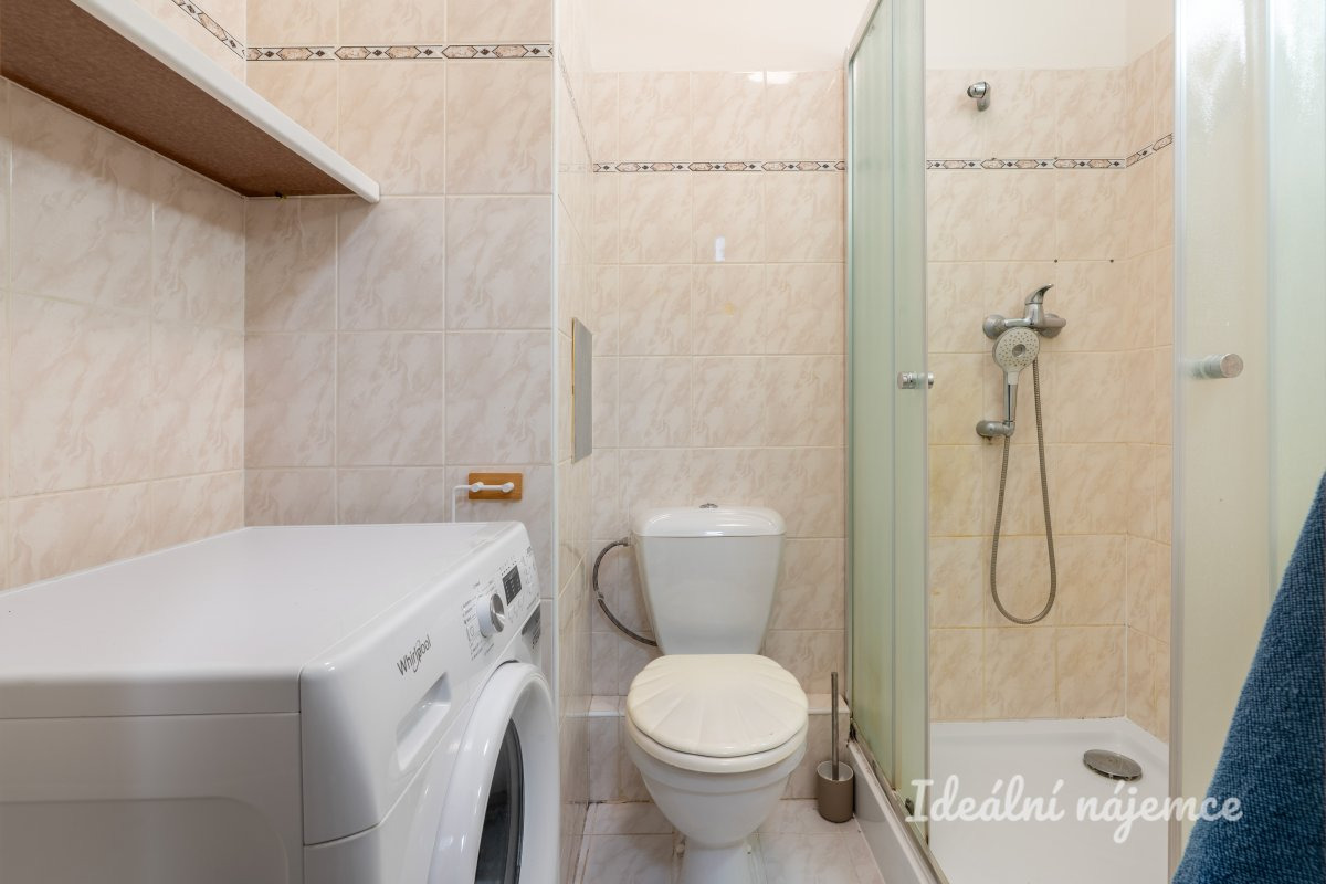 Byt je nabízen plně vybavený, takže umožňuje okamžité a pohodlné nastěhování bez dalších investic. Kuchyňská část je vybavena lednicí s mrazákem, elektrickou troubou, mikrovlnnou troubou, varnou deskou, digestoří a dostatkem úložného prostoru. Na kuchyň plynule navazuje obytná část s barovým posezením, pohodlným gaučem a konferenčním stolkem. K dispozici je samostatný pokoj, který je vybaven skříní a je zde prostor pro další dovybavení. Koupelna disponuje sprchovým koutem, umyvadlem, toaletou a pračkou, vše v praktickém a udržovaném stavu.
