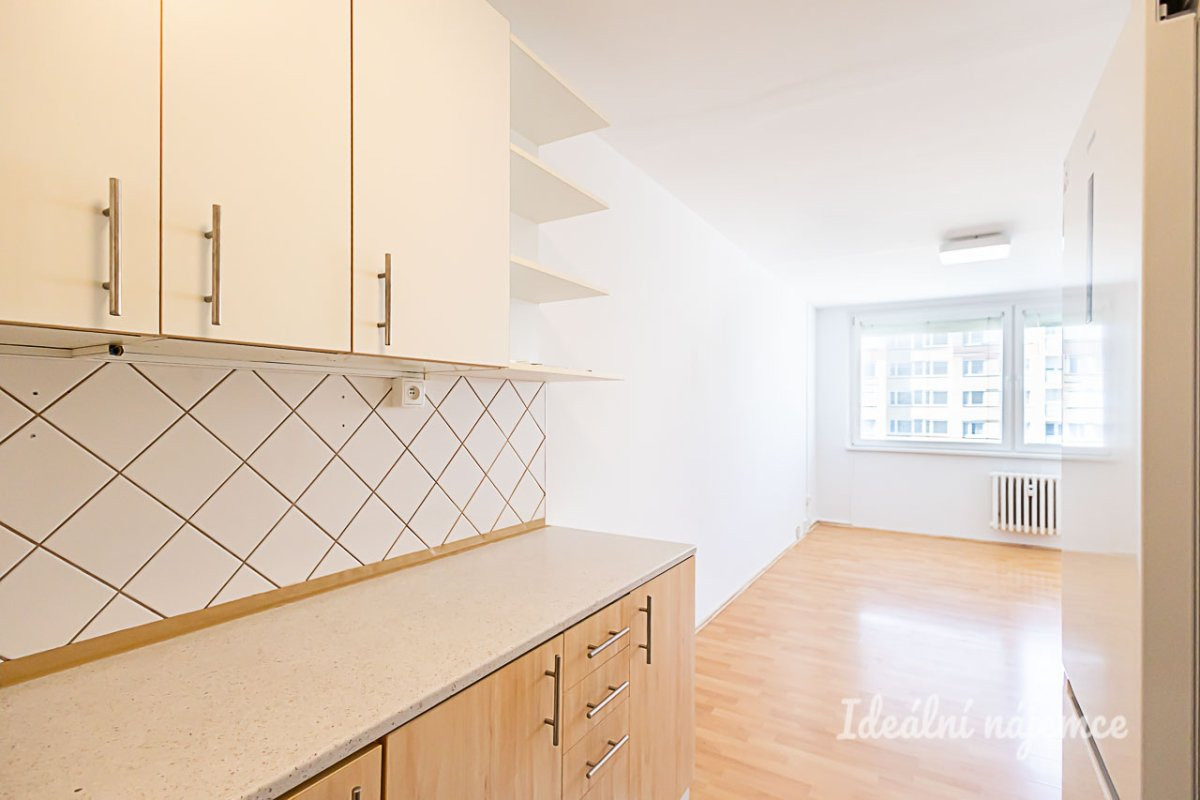 Nabízíme k dlouhodobému podnájmu příjemně světlý byt o dispozici 2+kk, situovaný v klidné a vyhledávané části Horních Měcholup. Tato útulná jednotka s celkovou výměrou 43 m² se nachází v 10. patře pečlivě udržovaného panelového domu, který je samozřejmě vybaven výtahem. Velkou výhodou je také praktický sklep, který k bytu náleží a poskytuje dostatek úložného prostoru pro vaše sezónní věci.