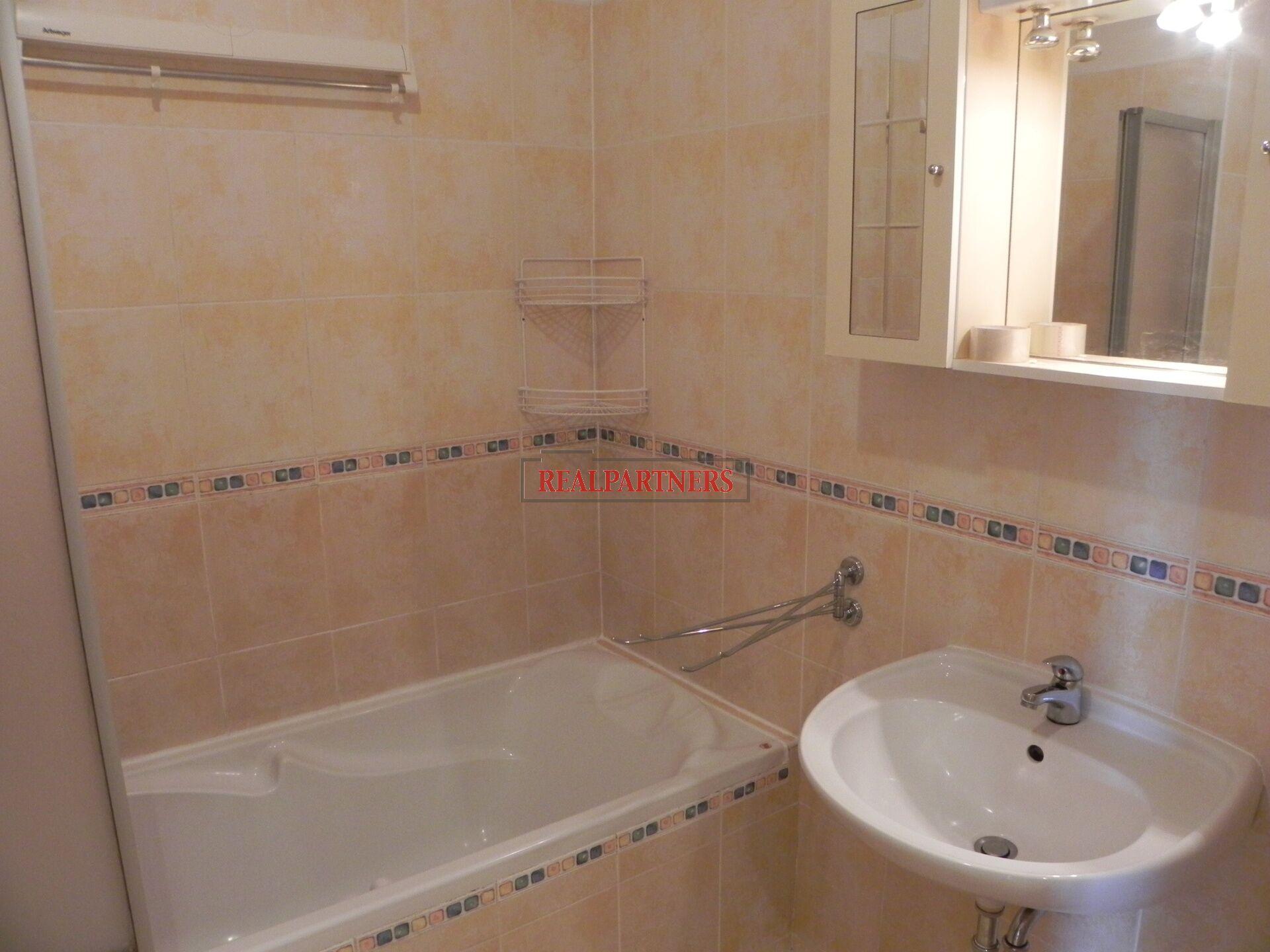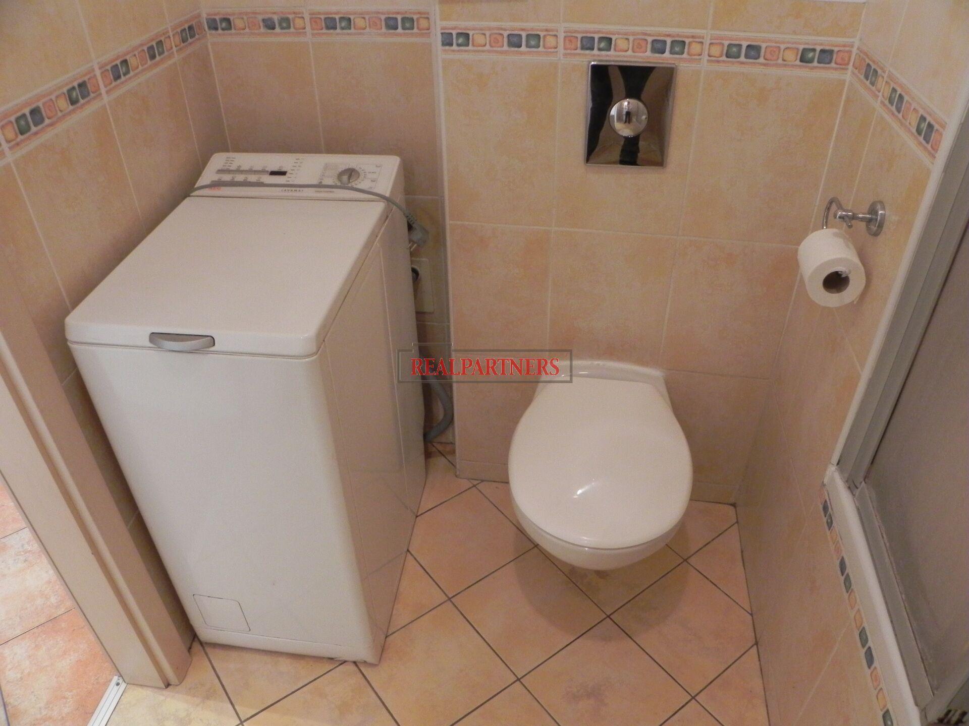 Z chodby vstup do obývacího pokoje, ložnice, zděny koupelny s vanou (přehrádka na sprchovaní), umyvadlem, toaletou a pračkou.