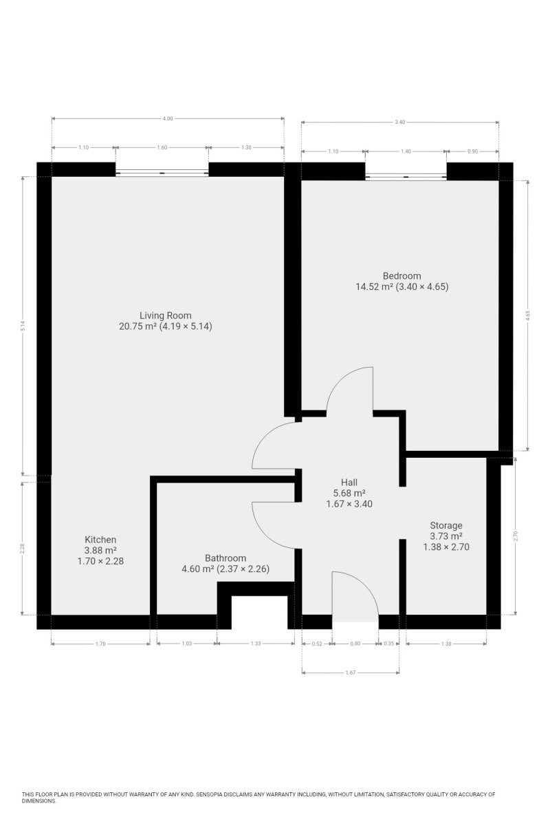 Byt se skládá ze vstupní chodby s úložným prostorem, hezké koupelny s rohovou vanou, umyvadlem, toaletou a pračkou. Kuchyně je prostorná a vybavena spotřebiči, jako je trouba, varná deska, digestoř a lednice. Obývací prostor je kompletně vybaven velkou sedací soupravou a obývací stěnou. V ložnici je k dispozici velká postel.