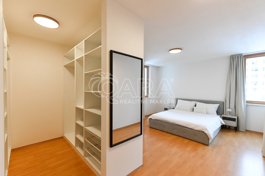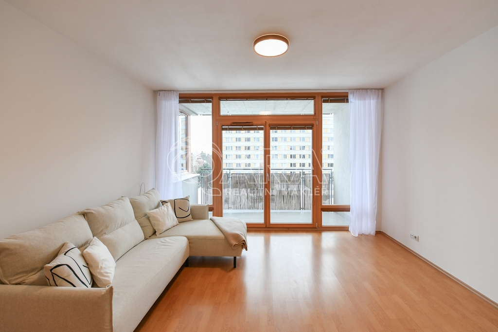Exkluzivní nabídka pronájmu bytu o dispozici 2+kk s lodžií, ul Panuškova, Praha 4 - Krč. Byt je umístěn ve 4.NP bytového domu z roku 2009.