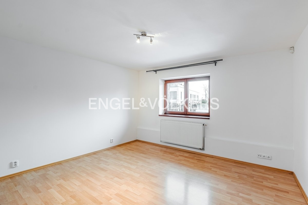 K dlouhodobému pronájmu nabízíme prostorný byt s dispozicí 2+kk, situovaný v přízemí rezidenčního domu v klidné a prestižní lokalitě Na Hřebenkách.