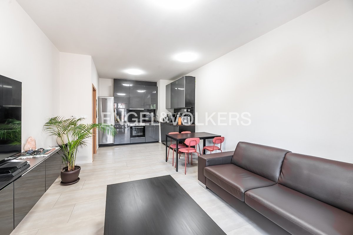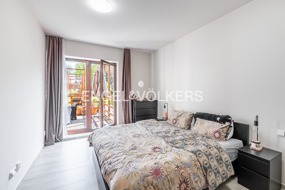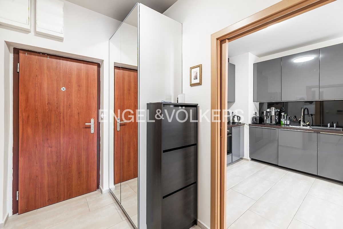 Byt disponuje vstupní předsíní, koupelnou vybavenou sprchovým koutem, pračkou a sušičkou, dále samostatnou ložnicí a prostorným obývacím pokojem spojeným s plně vybavenou kuchyní se všemi spotřebiči. Z ložnice a obývacího pokoje se dále dostanete na soukromou terasu, která je situována do klidného vnitrobloku, jenž je přístupný pouze rezidentům objektu.