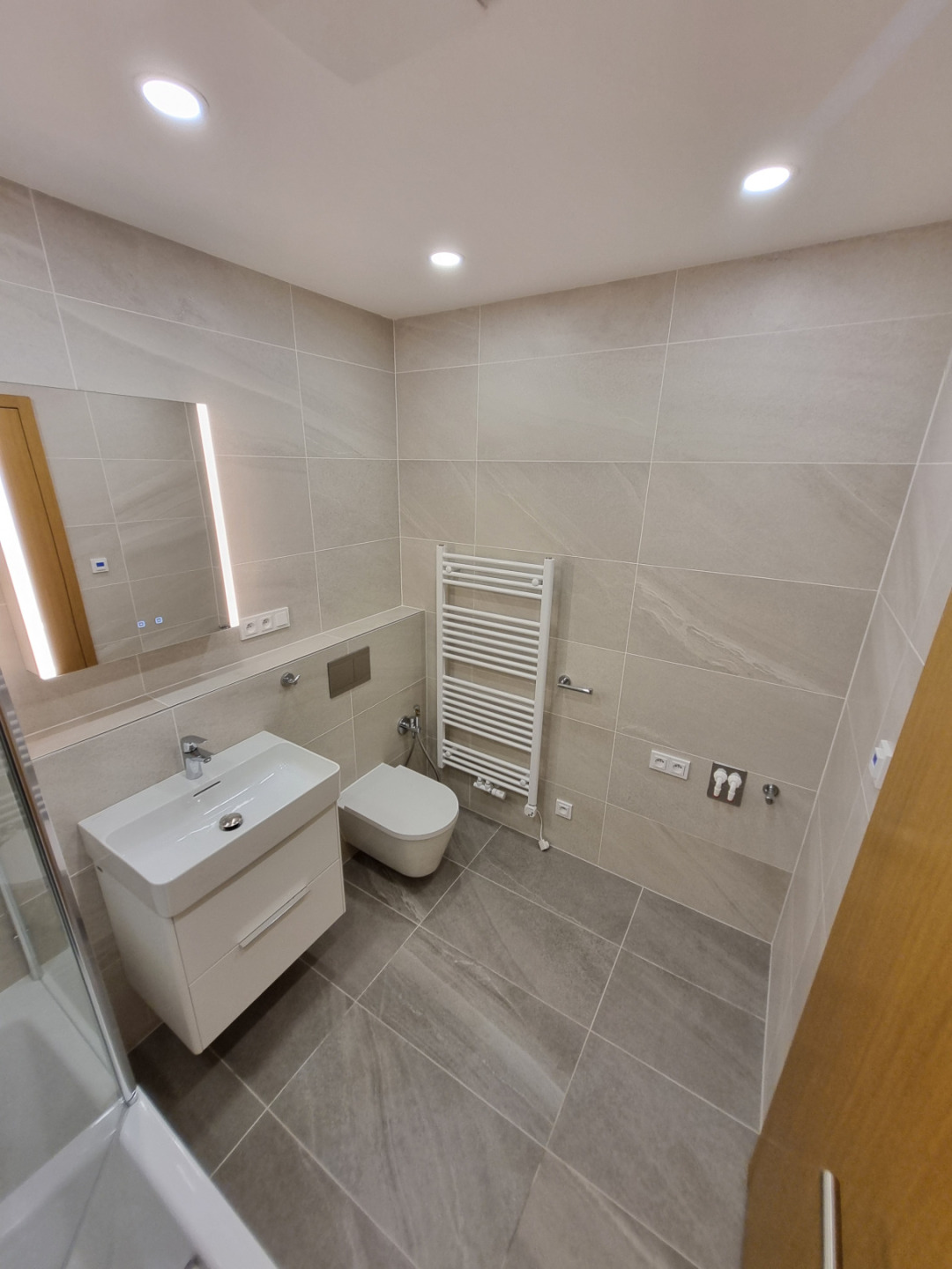 Byt se nabízí zařízený s zcela novou kuchyňskou linkou se spotřebiči WHIRLPOOL (lednice s mrazákem, myčka, mikrovlnná trouba, indukční varná deska a digestoř), moderními designovými LED svítidly v celém bytě. Pro příjemnou atmosféru jsou v ložnici a v obývacím pokoji svítidla stmívatelná. V předsíni je prostorná vestavná skříň s věšákovou stěnou. V koupelně je nainstalována zrcadlová galerie, skříňka pod umyvadlem, háčky, držáky, atp. WC mísa GEBERIT a toaletní sprchou. Koupelna má vanu. Podlahy jsou dřevěné. Veškerá okna jsou vybavena venkovními žaluziemi. Možnost napojení na kabelový internet (datová zásuvka v každém pokoji).