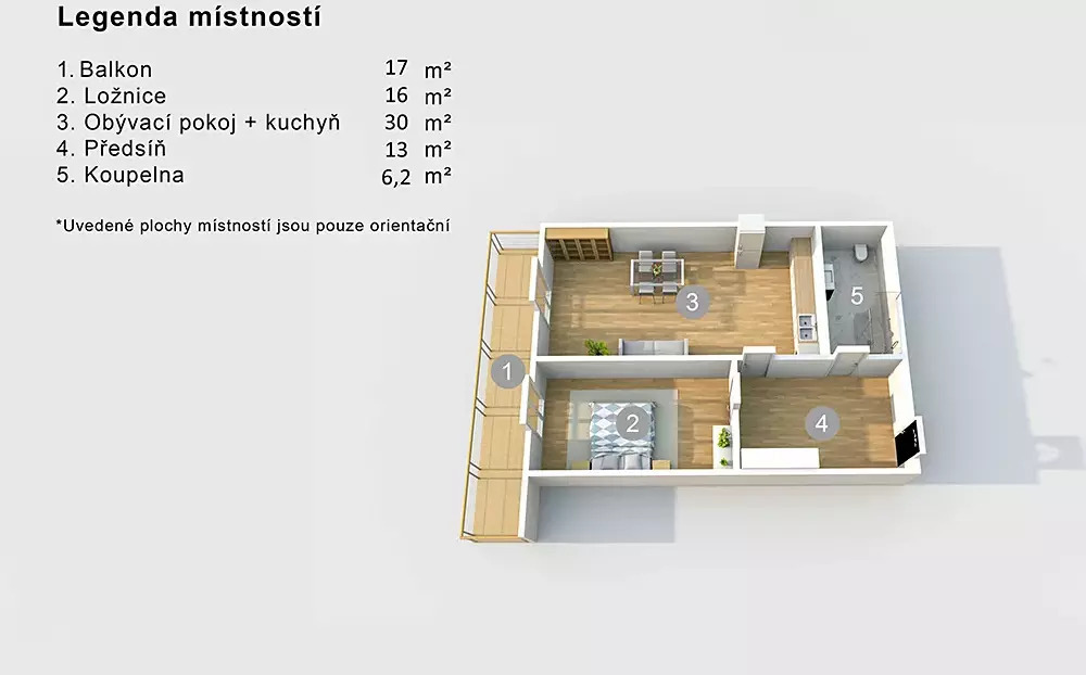 | Dispozice/podlahová plocha: | 2+kk/65 m² |
