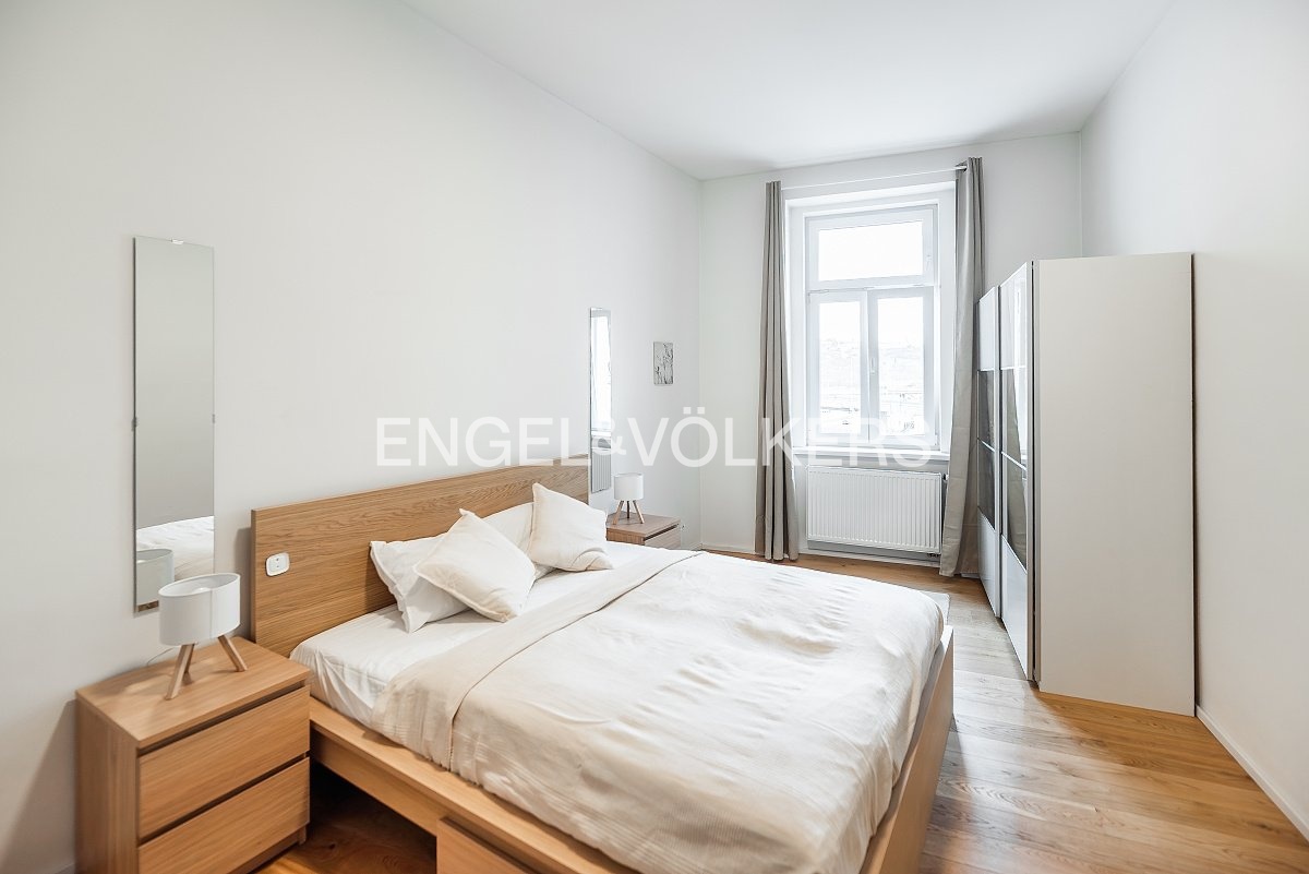 Krásný byt s dispozicí 2+kk (obývací pokoj s kuchyňským koutem + samostatná ložnice) a celkovou výměrou 60 m² se nachází ve 2. nadzemním podlaží činžovního domu v atraktivní lokalitě Holešovic.