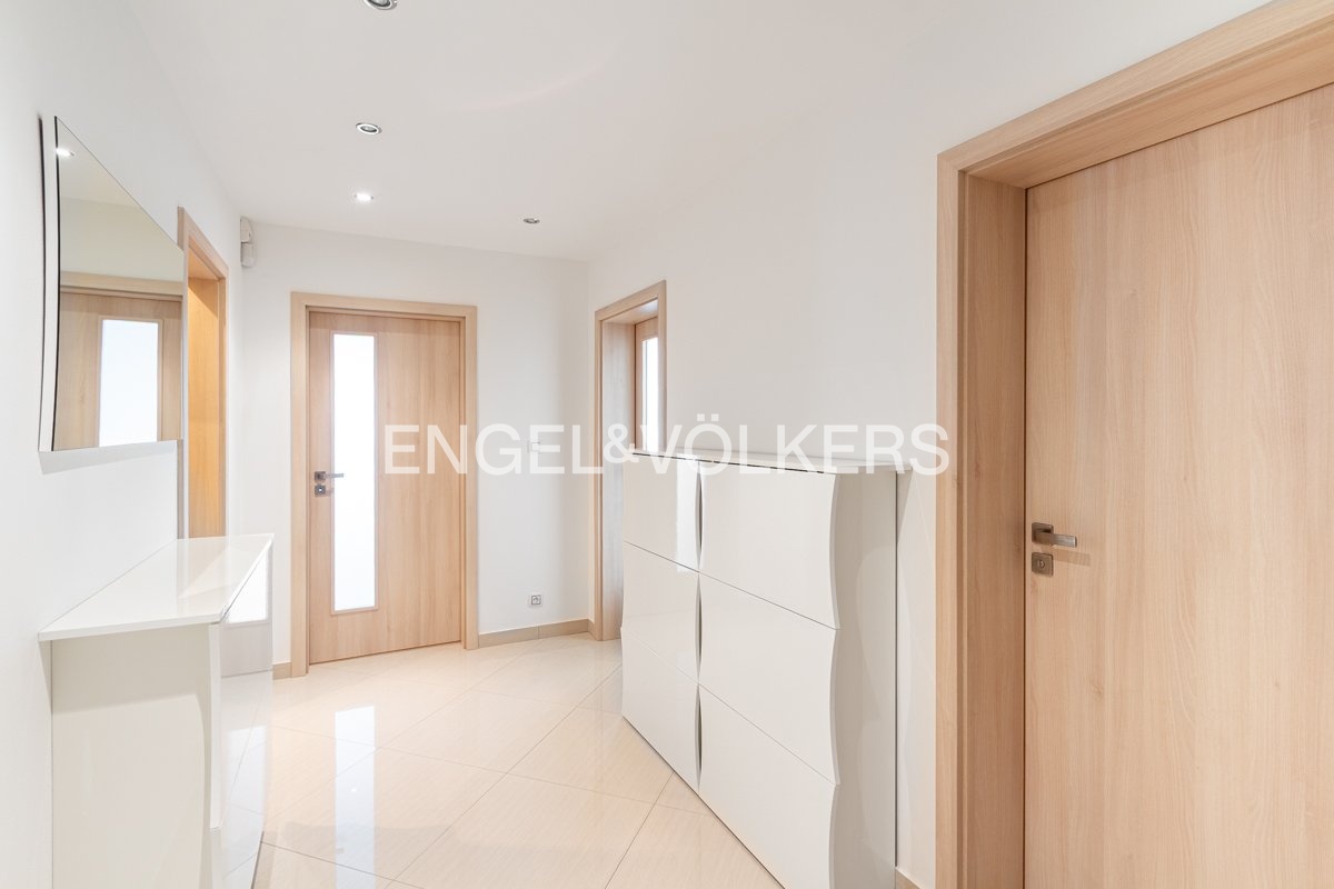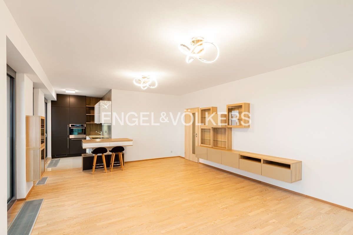 Byt o výměře 72 m² je situován ve 12. nadzemním podlaží ze 17. Dům je vybaven recepcí, výtahem a bezbariérovým přístupem. Dispozice bytu zahrnuje prostorný obývací pokoj s plně zařízeným kuchyňským koutem s barovým pultem, indukční varnou deskou, elektrickou troubou, lednicí a myčkou. V předsíni se nachází šatna a botník. Ložnice je zařízena komodami a šatní skříní. Koupelna je vybavena vanou, umyvadlem, toaletou, pračkou a sušičkou. V ceně pronájmu je k dispozici sklep o rozloze 5 m2. Možnost zajištění pravidelného úklidu za příplatek.
