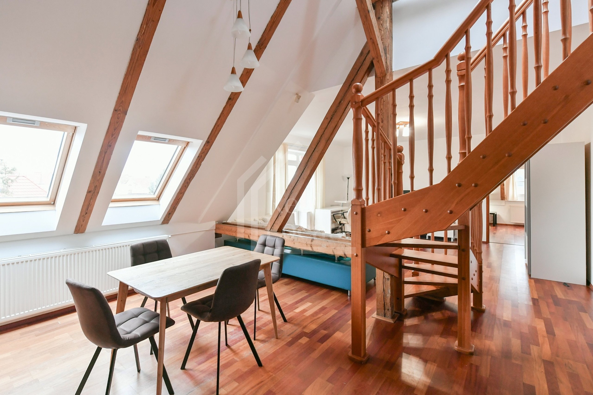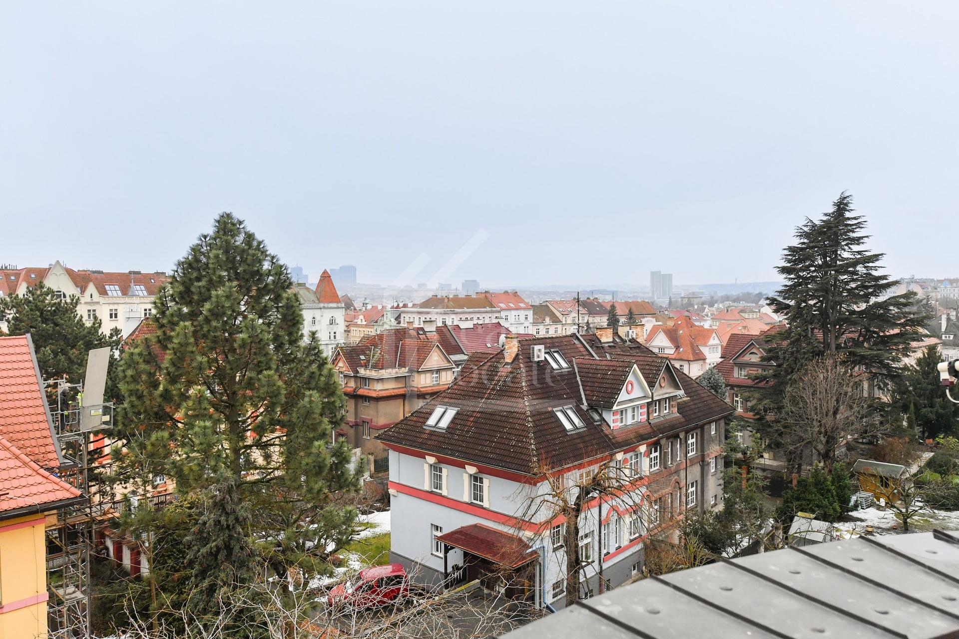 Nabízíme k pronájmu nadstandartní a světlý byt 2kk + balkon + galerie, ve vilové zástavbě v ulici Hradešínská, Praha 10 - Vinohrady. Tento jedinečný, zařízený byt cca (114m² + 4m²) se nachází v třetím patře vilového domu (celkem 3 byty + kancelářské prostory) činžovního domu se společnou krásnou zahradou a 1 parkovacím místem. Byt se skládá s prostorného obývacího pokoje s plně zařízeným kuchyňským koutem a vstupem na balkón. Dále je v bytě atypicky řešená ložnice pro až 4 osoby a také galerie nad obývacím pokojem, která lze využít jako pracovna nebo jako pokoj pro návštěvy. Koupelna s rohovou vanou a samostatná toaleta je přístupná přímo z navazující předsíně. Byt je klimatizovaný a má krásné dřevěné podlahy. Velkou výhodou tohoto bytu je možnost využívat společnou zahradu a vyhrazené parkovací stání. Reprezentativní bydlení v centru města jen pár minut od veškerého občanského vyžití.