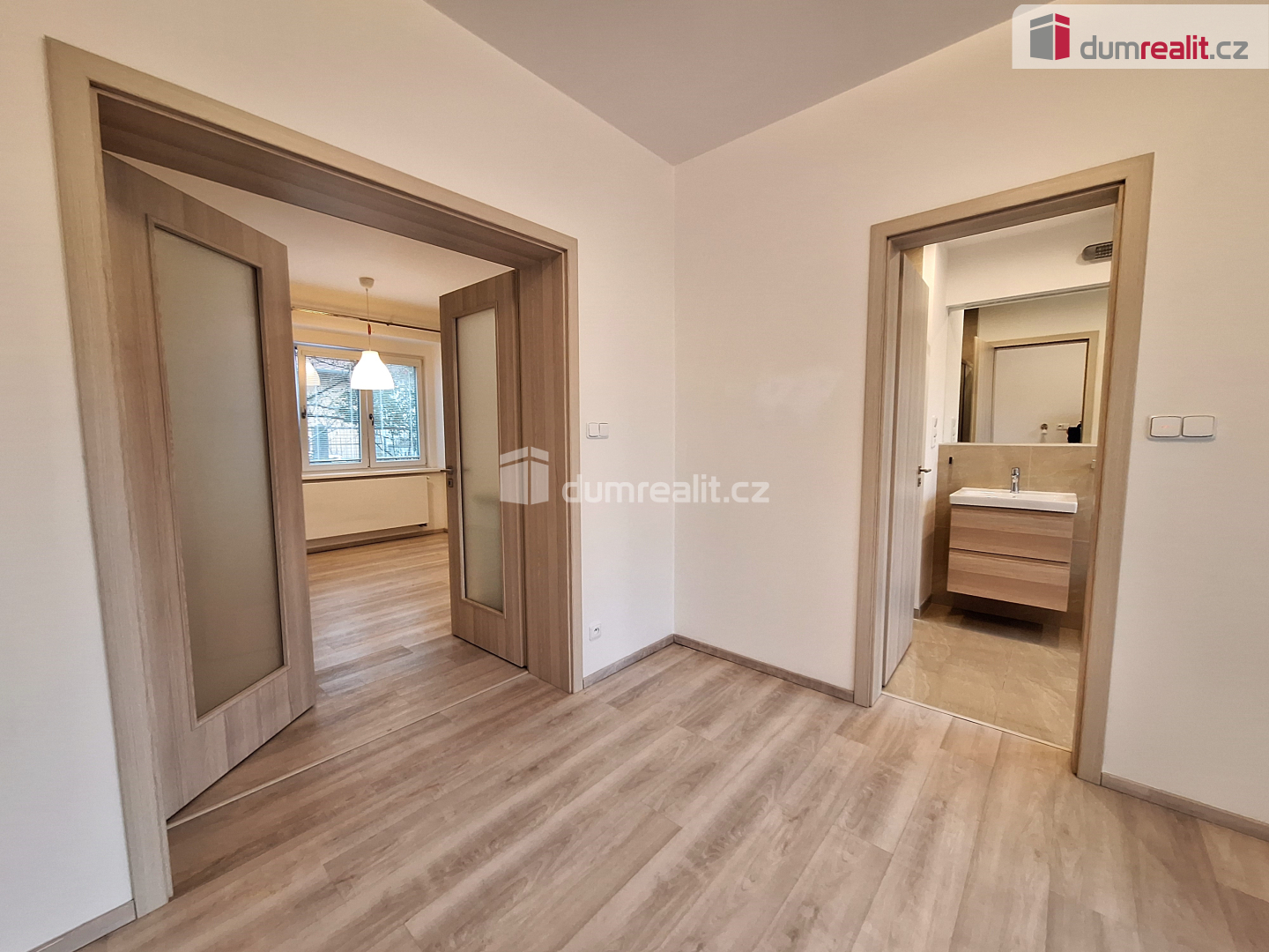 Pronájem bytu 2kk, o velikosti 36m² s terasou 5m² na P4 Záběhlice, ul. Severozápadní. Byt se nachází v přízemí malého řadového domku v klidné lokalitě širšího centra Prahy. Dům i byt je po nedávné nedávné kompletní rekonstrukci (okna, střecha, veškeré instalace, zateplení a povrchy), zateplený na nízkoenergetický standard, vytápění je velmi úsporné. Dispozice: obývací část s kuchyňskou linkou, dále chladnička s mrazící přihrádkou, elektrická horkovzdušná trouba, indukční deska a cirkulační digestoř. Ložnice se vstupem na terasu s podlahou z afrického dřeva a orientací do zahrady. Koupelna s prostorným sprchovým koutem, WC, bidetem a prostorem pro menší pračku. Koupelna je vytápěna radiátorem, žebříkem pro sušení ručníků a pro letní přitopení je zde elektrický infrazářič. Okna i vnější dveře jsou plastové, zasklené trojskly a všechny mají bezpečnostní skla Conex proti vloupání, se žaluziemi a garnyžemi s dvojicí kolejnic pro závěs a záclony. Plynový kondenzační kotel v domě zajišťuje úsporné vytápění i ohřev teplé vody v externím zásobníku. Byt má ve všech místnostech akustický sádrokartonový podhled a vstupní dveře do bytu ze společné chodby jsou též akustické. V bytě jsou v obou místnostech zásuvky pro příjem televize a zásuvky pro telefon a počítačovou síť. Do domu je zaveden velmi rychlý optický internet (Fiber internet 1000). Veškeré instalace jsou nové, podlahy jsou vinylové a keramické. Obývací pokoj je orientován na jih, ložnice a zahradní terasa na sever. Bezproblémové parkování před domem, nejsou zde modré zóny. Velmi příjemné místo v zeleni s dobrou dopravní dostupností i sítí služeb. Nedaleko se nachází Tesco s potravinami, cca 300 m od domu je stanice autobusů 118, 138 a 170 s dojezdem 7 minut k metru Budějovická a cca 20 min. na Smíchov, autem cca dvě minuty na jižní spojku a magistrálu. Nedaleko Kunraticko-michelský les, vodní nádrž Hostivař a další rybníky. Byt je určen nekuřákům bez domácích zvířat, max. 2 osobám a je k dispozici ihned. Doporučuji Ev. číslo: 653276.