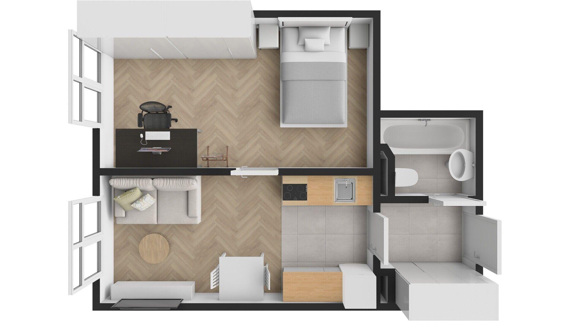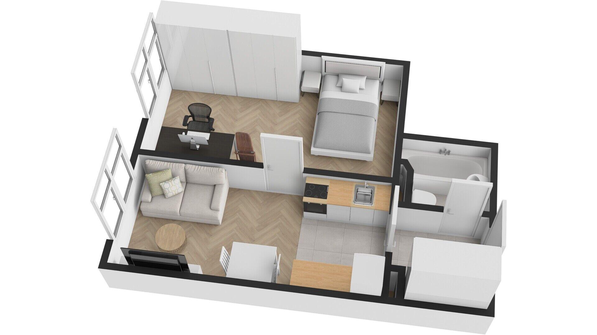 | Dispozice/podlahová plocha: | 2+kk/39 m² |