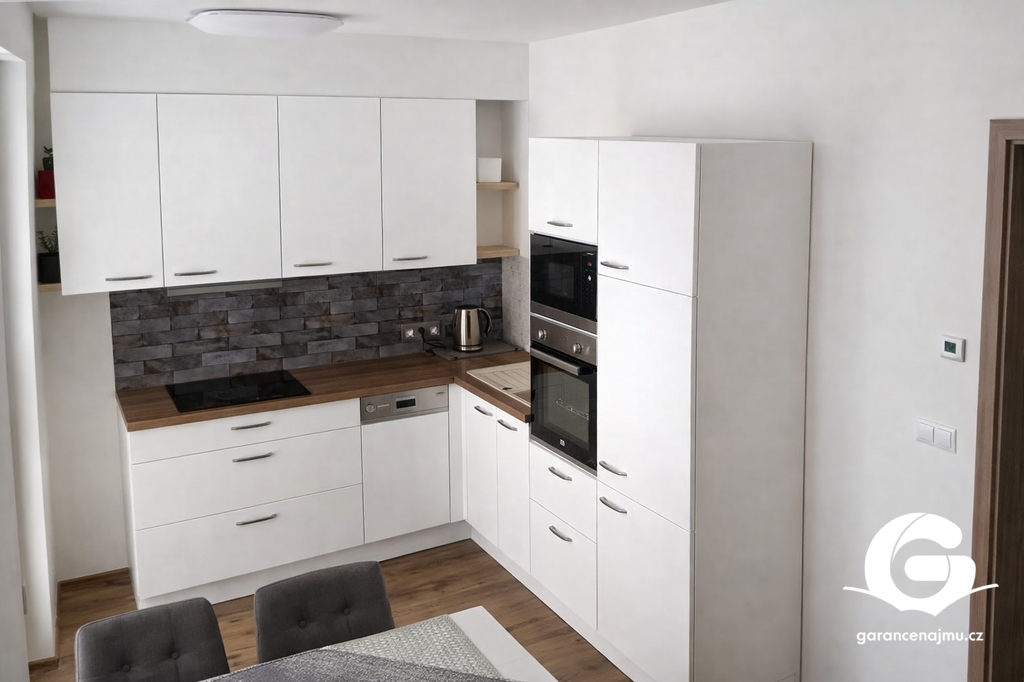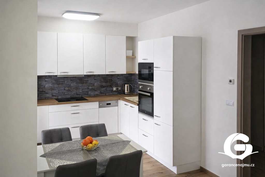 K bytu náleží sklepní kóje a garážové stání, které jsou již zahrnuty v ceně nájmu. Dispozice bytu je praktická a nabízí komfortní bydlení pro jednotlivce nebo pár.