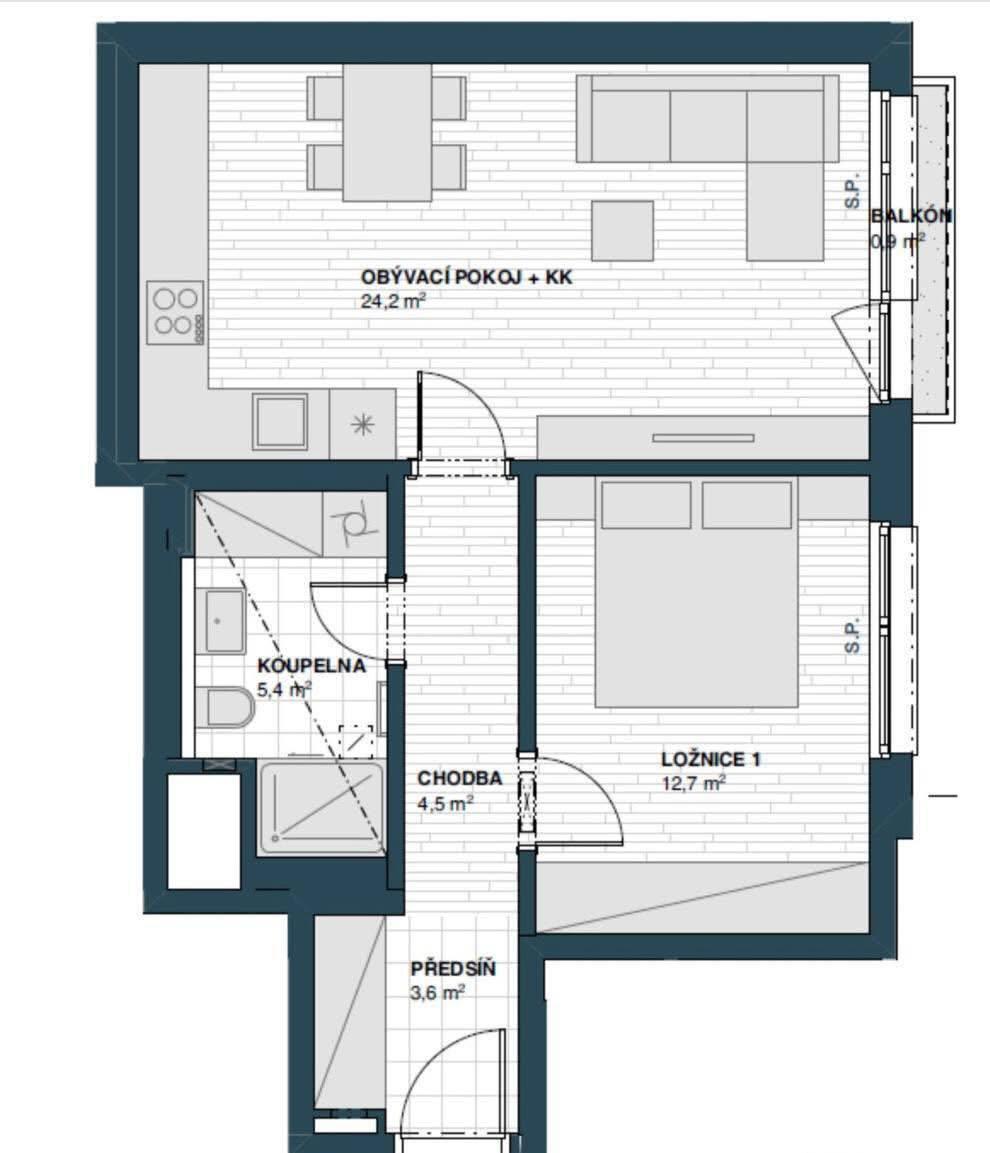 Nabízíme k pronájmu nový byt 2+kk o celkové ploše 54 m and sup2; s balkonem, situovaný v novostavbě v lokalitě Praha 4 Kamýk.
